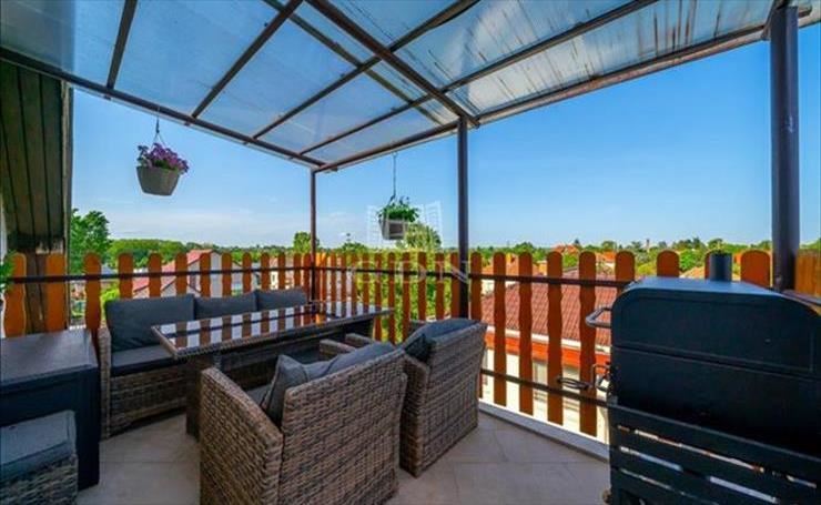 Eladó a XVII. kerület kertvárosában egy 76 m² hasznos alapterületű, panorámás tetőtéri lakás 9 m² terasszal, saját kocsibeállóval és 150 m² közös kerttel – 85 millió Ft-ért, azonnali költözéssel.