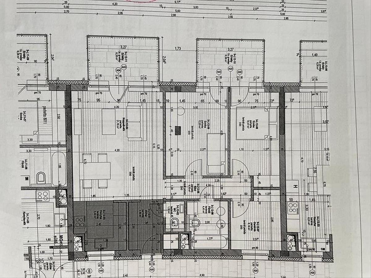 Amerikai konyhás nappali + étkező, 2+1 fél szoba, kádas fürdőszoba + wc, külön wc, közlekedő, előszoba, 2 darab 12 nm-es erkély.