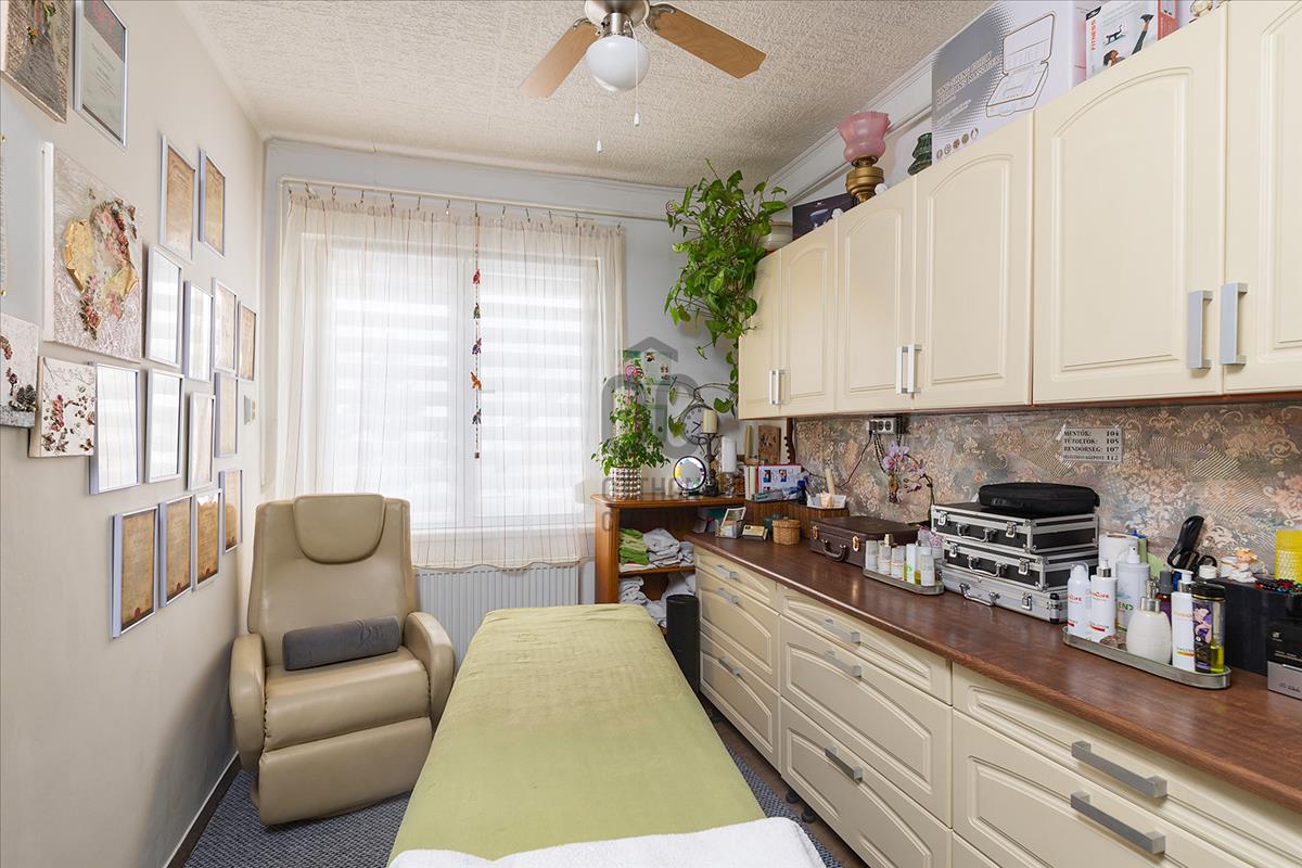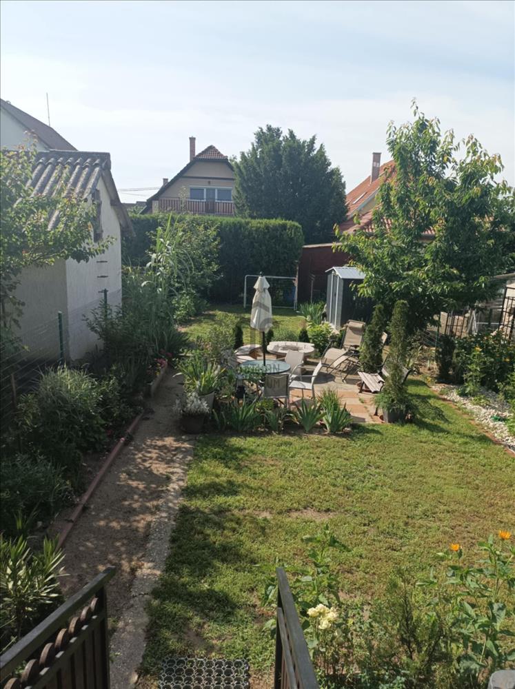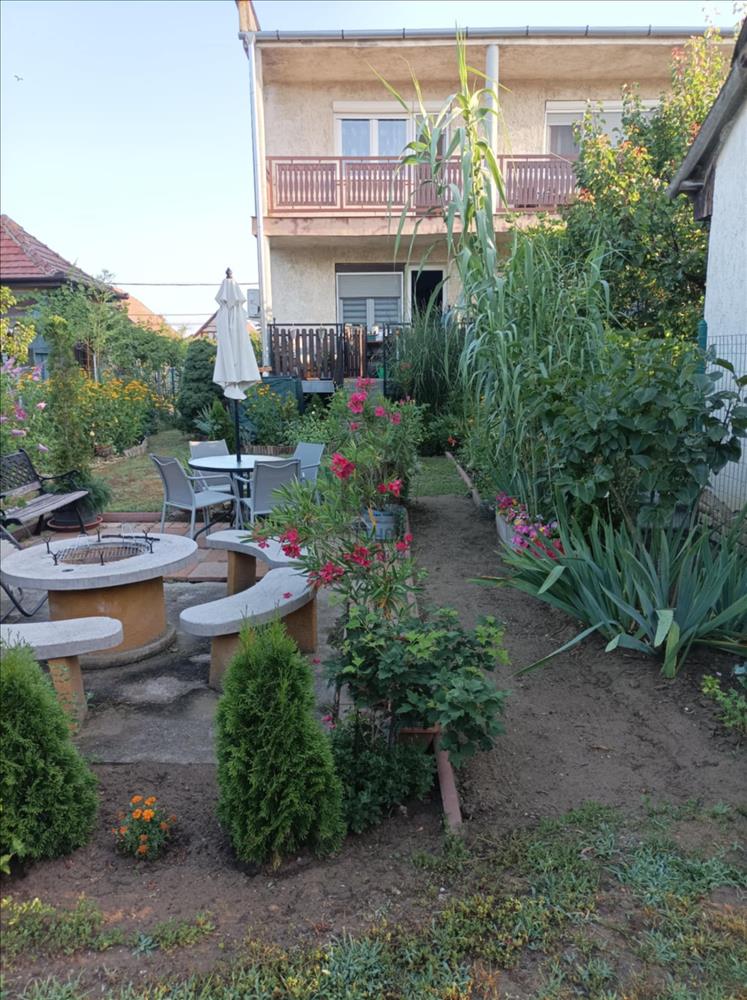 XVII. kerületben Rákoscsaba kertvárosi, családi házas részén (Szent László telep) csendes mellékutcában kínáljuk megvásárlásra egy kétlakásos társasház felújított földszinti, 83 nm-es, nappali-konyha-étkező + 3 egész szobás, kertkapcsolatos, napfényes lakását. Az ingatlanhoz 260 nm-es kizárólagos használatú, leválasztott kert, valamint a pinceszinten 1 kisebb személyautó parkolására alkalmas garázs és tároló tartozik (21nm), itt van víz és lefolyó, így mosókonyhaként is használható. Ezen kívül telken belül 1-2 autóval kényelmesen parkolhatunk a felszíni beállón. a lakás bejárata zárt lépcsőházból nyílik, a belső elrendezése kiváló, minden helyisége ablakos, fekvésénél fogva körbesüti a nap, ennek köszönhetően gyönyörű világos. a tágas előszobából nyílik a teraszon át kertkapcsolatos konyha-étkező nappali újszerű, modern bútorral, továbbá 3 külön bejáratú egész szoba, fürdőszoba, külön wc. a nappali D-DK-i tájolású, tartozik hozzá egy 16 nm-es terasz, ahonnan közvetlenül a kertbe jutunk. a szobák frissen parkettázottak (laminált padló), a többi helyiség járólappal burkolt, a fűtést és a használati melegvizet egy kondenzációs kazán adja. a fűtésrendszert, a vízcsöveket, az elektromos hálózatot felújították, a nyílászárókat cserélték korszerű, hőszigetelt üvegezésű műanyag ablakokra redőnyökkel és szúnyoghálóval felszerelve, ezzel együtt a burkolatok, szaniterek is megújultak. a biztonságról riasztó gondoskodik, a nyári melegben a kellemes hőmérsékletről pedig a nappaliban lévő légkondicionáló. Az ingatlan kifogástalan állapotban van, nem igényel felújítást. a falakon egyedi, kézzel készült gyönyörű festés található, mely igazi éke a lakásnak. Fiatalos, modern, letisztult stílus, harmonikus színek. a környék kifejezetten csendes, buszmegálló, bevásárlási lehetőség (Pesti úti Aldi, Lidl) pár perces sétával elérhető.