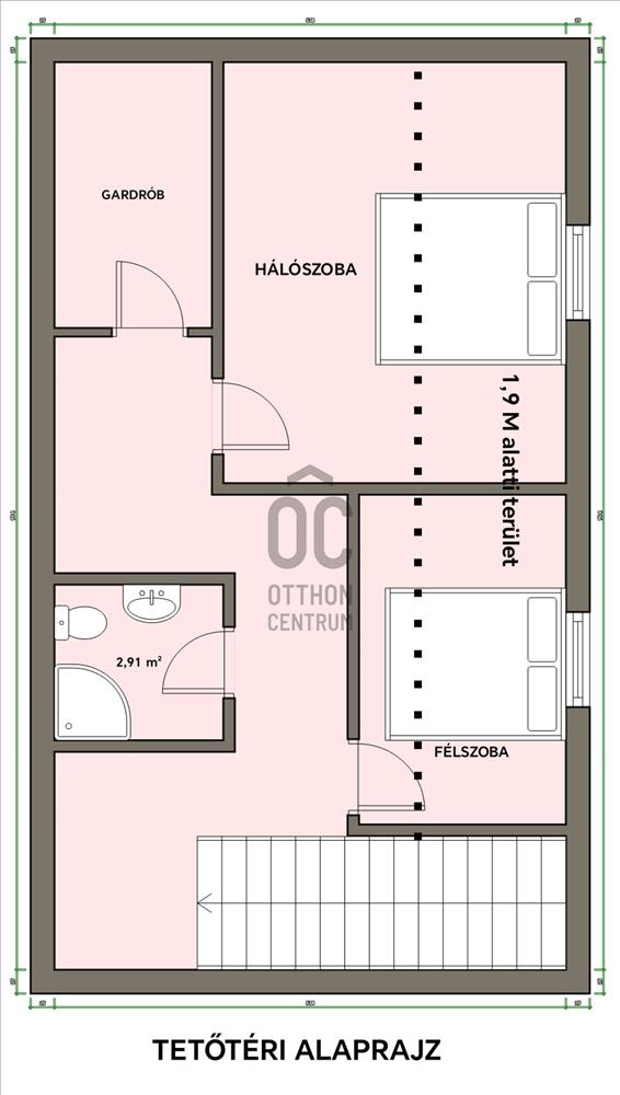 A felső szinten két külön nyíló szoba található, amelyek hálószobának, gyerekszobának vagy dolgozószobának is ideálisak.