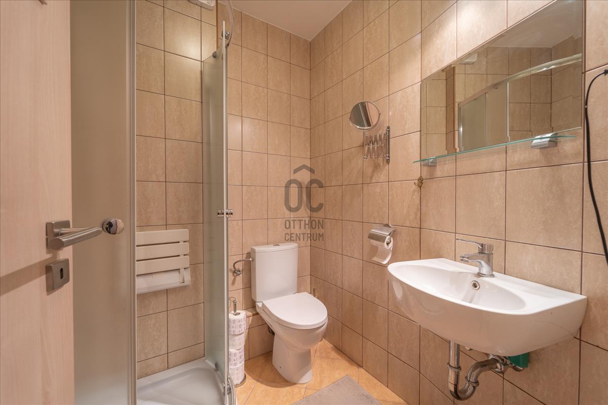 Itt kapott helyet a második fürdőszoba WC-vel, ami jelentősen növeli a lakás komfortját.