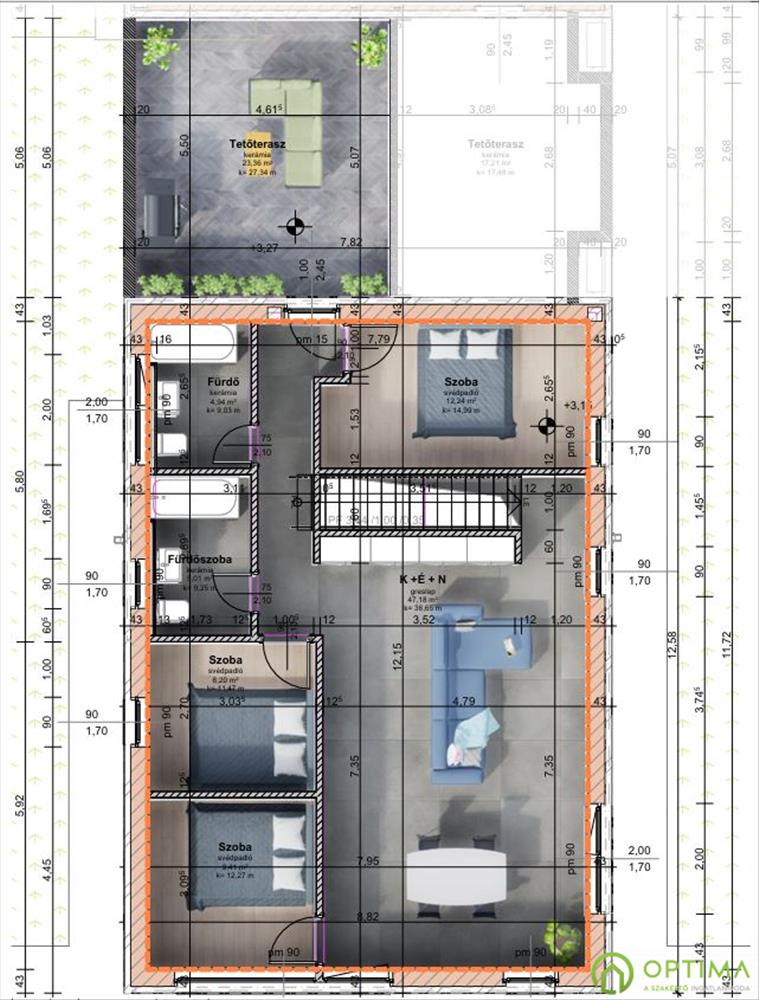 MODERN DUPLAKOMFORTOS OTTHON NAGY TERASSZAL 91 m²-es, ÚJÉPÍTÉ...