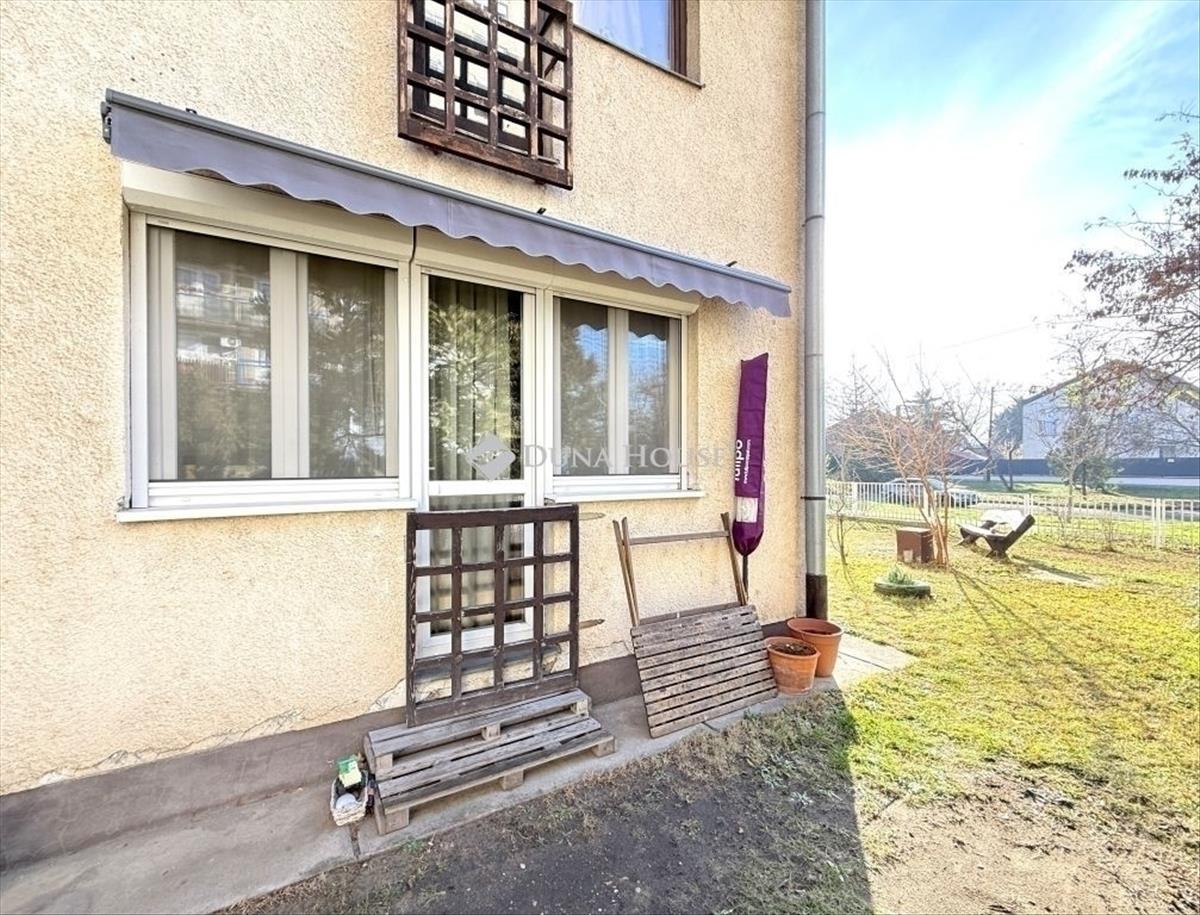 Az amerikai-konyha, hálószoba elrendezésű lakás jó állapotban van, nyílászárói már modern műanyagok, melyeken redőnyök és szúnyoghálók is vannak. Az észak-nyugati fekvésű nappali ablakai a gondozott, rendben tartott zöld udvarra néznek, ahol akár egy finom kávé elfogyasztása közben hallgathatjuk a madarak csicsergését.