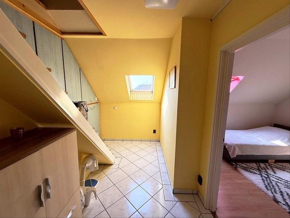 Közlekedő: 13, 3 m², beépített gardróbszekrénnyel, innen vezet fel a lépcső a beépített padlástérre.