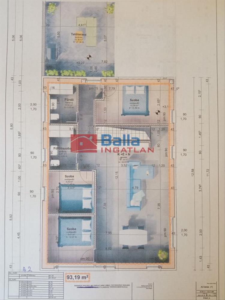 -A2 lakás 93m2+23. 36m2 Tető Teraszt ( Nappali-konyha + 3 háló + 2 fürdő + Tető Terasz 41nm. - 120. 6MFt )