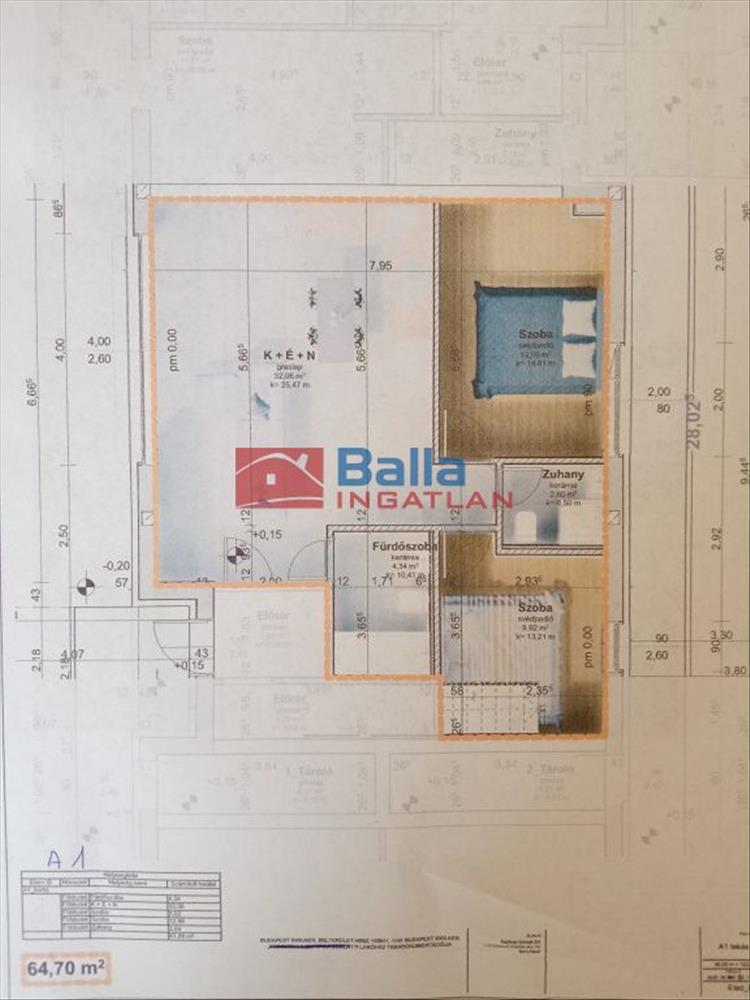-A1 lakás 64. 7m2 ( Nappali + 2 háló + 2 fürdő, - 77. 99MFt)