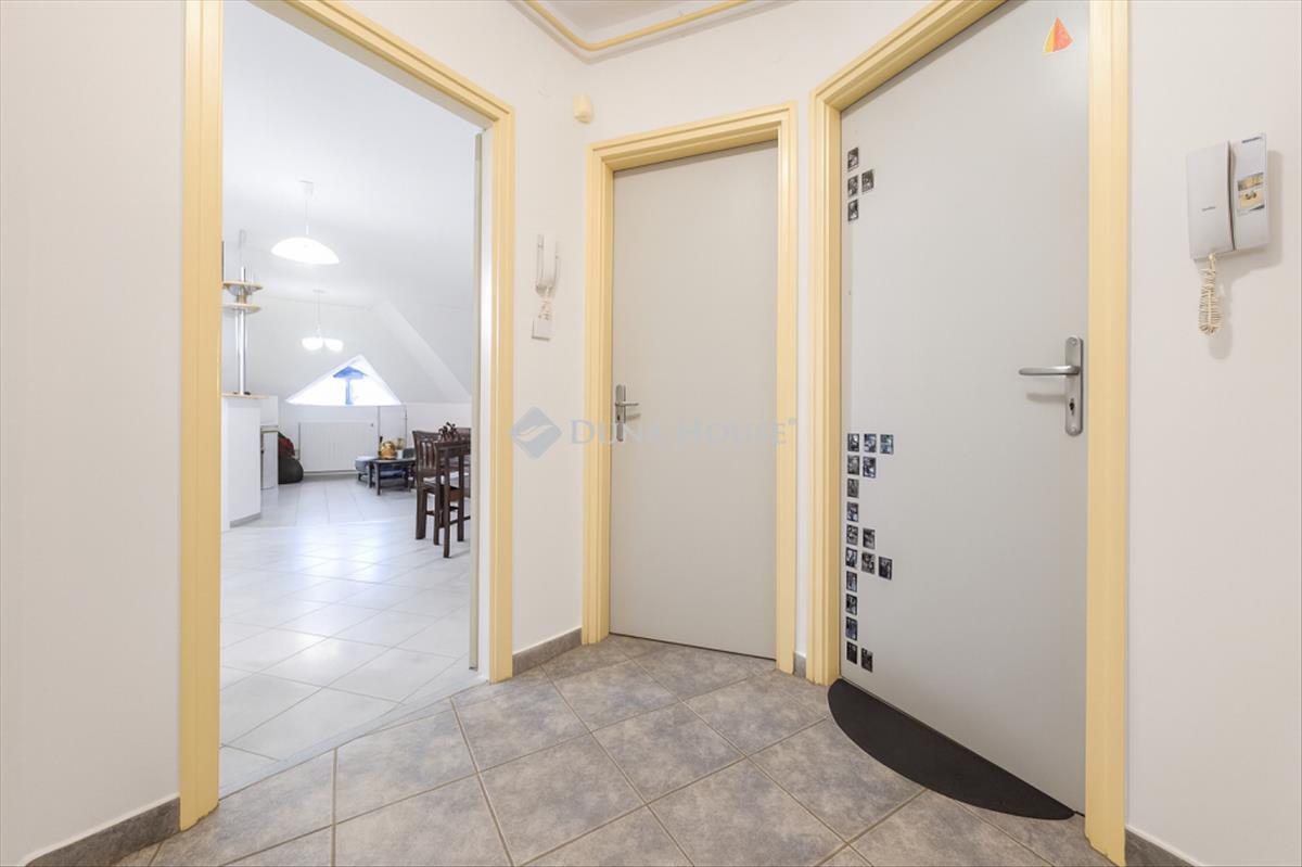 Iskola és óvoda sétatávolságra tágas tetőtéri lakás GanzkertvárosbanBudapest XVIII. kerületében, Ganzkertváros csendes, kertvárosi részén, a Kandó téri általános iskola közelében eladó egy 4 lakásos társasház tetőterében található, jól tagolt, élhető elrendezésű lakás. a lakás tulajdoni lap szerint 76 m²-es, nappali + 2 szobás, a valóságban azonban nappali + 3 különálló szobával rendelkezik, valamint egy saját padlástérrel, amely alapító okirat szerint is a lakáshoz tartozik. Ez a kialakítás kifejezetten ideális gyermekes családoknak, illetve azoknak, akiknek szükségük van egy külön dolgozó- vagy vendégszobára. Műszaki állapot és felszereltség:- Új, modern konyhabútor, amely a vételár részét képezi(elektromos főzőlap és sütő beépítve, mosogatógép kivételével)- Új kondenzációs gázkazán, padlóban vezetett fűtéscsövekkel egyenletes, komfortos hőérzet- Radiátoros fűtés + 2 db klímaberendezés- Egyedi közműmérők, kedvező fenntartási költségek(téli rezsi kb. 40. 000 Ft)- a lakáshoz tartozik 1 db felszíni autóbeállóKözös költség: 16. 000 FtVillamos hálózat bővítése folyamatban 32A-reA lakáshoz tartozik egy 11 m²-es fedett terasz, amely jól használható pihenésre, reggeli kávézáshoz vagy akár gyereksarok kialakítására. Elhelyezkedés családbarát mindennapok:- Iskola, óvoda 5 perc sétára- Buszmegálló 5 perc gyalog, köki 25 perc tömegközlekedéssel- Nyugodt környezet, csendes, barátságos szomszédságEz az ingatlan ideális választás lehet kétgyermekes családoknak, illetve azoknak, akik kertvárosi nyugalmat, mégis jó közlekedést keresnek, alacsony fenntartási költségek mellett. Amennyiben egy jól működő, élhető otthont keres Ganzkertvárosban, érdemes személyesen is megtekinteni. FIX 3% lakáshitelre megvehető