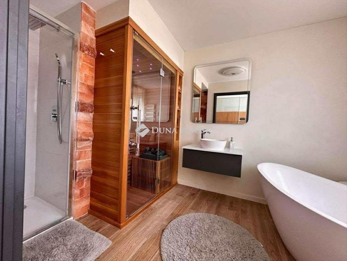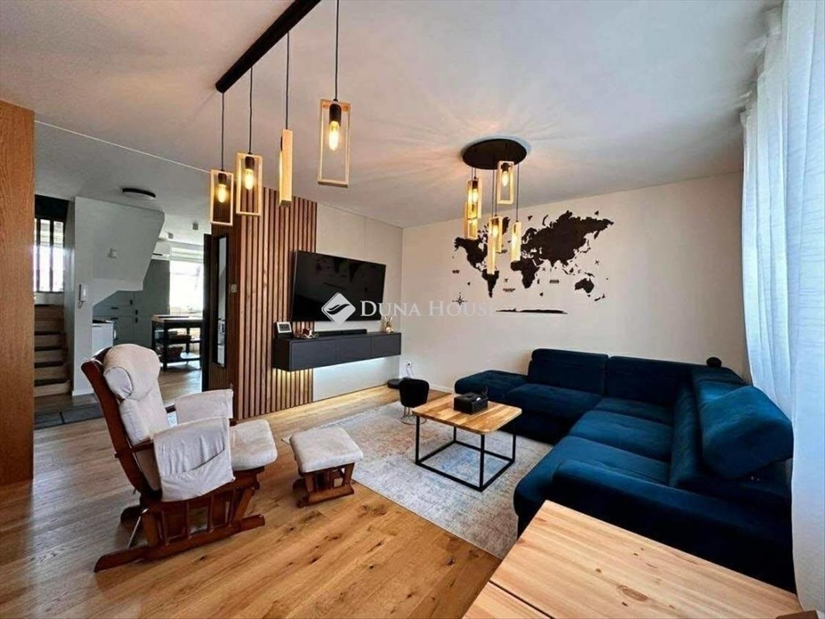 Eladó prémium minőségben felújított, belső kétszintes lakás az Alacskai lakótelepenBudapest XVIII. kerületében, az Alacskai lakótelepen kínálok megvételre egy harmadik emeleti, belső kétszintes, 117 m²-es, amerikai konyhás nappali + 3 szobás lakást. Az ingatlan rendkívül átgondolt belsőépítészeti elrendezéssel rendelkezik, igényes, prémium minőségű burkolatokkal és elegáns megjelenéssel. a lakás jelenlegi kialakítása:Az alsó szinten amerikai konyhás nappali, vendégmosdó, lépcsőtér és előtér található. Az emeleten két nagy méretű hálószoba, valamint egy kisebb dolgozószoba kapott helyet, amelyet üvegfala miatt különösen sok természetes fény jár át. Itt található továbbá egy tágas közlekedő, egy hatalmas beépített gardrób, valamint egy különleges fürdőszoba álló káddal, szaunával és minden kényelmi extrával. Az ingatlan 2021-ben teljes körű felújításon esett át, mind gépészetileg, mind esztétikailag. a felújítás folyamata dokumentált. Extrák:2 db hűtő-fűtő klímaelektromos redőnyök az ablakokonházközponti fűtés egyedi mérésselAmennyiben egy igényes, tágas, központi elhelyezkedé