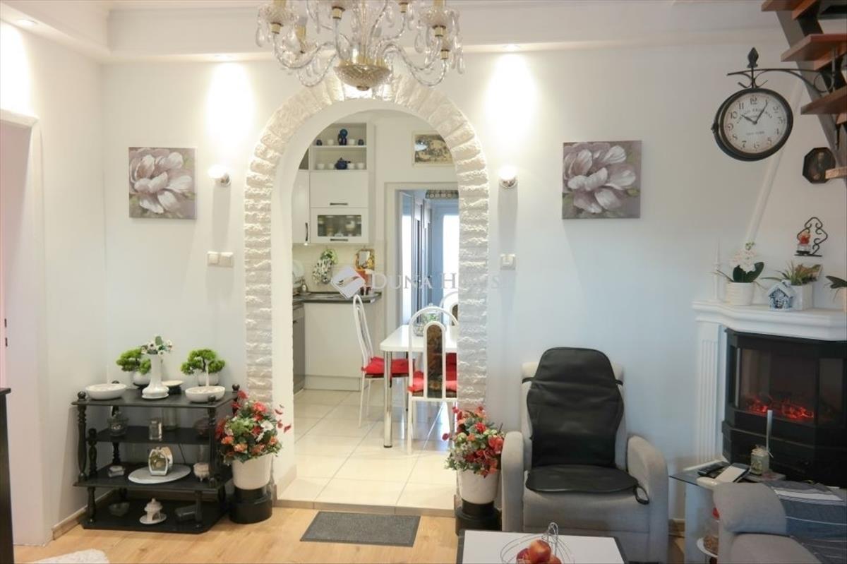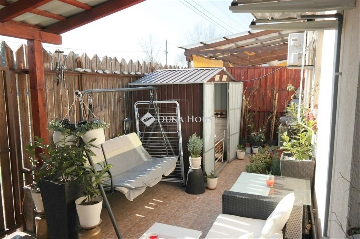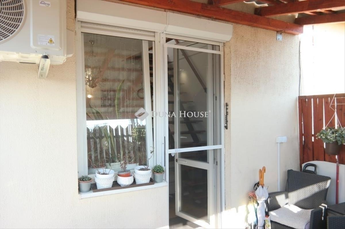 XX. kerület szélén Soroksárhoz közel, zárt lakóparkon belüli belső két szintesálomotthon autóbeállási lehetőséggel, saját 24nm -es kertrésszel, tárolóval, kétklímával, igény esetén gépesítve és teljes bútorzattal ELADÓ! Az ingatlan alsó szintje hivatalosan 43 nm alapterületű, az előszoba és a tetőtér később került beépítésre. Ezekkel együtt a megnövelt nettó alapterület64 nm , melyben nincsenek benne a felső szinten a 190 cm-nél alacsonyabbbelmagasságú részek (82 nm lenne a bruttó). a fűtésről gáz cirkó gondoskodik, az alsó szinten a nappaliban és a hálóban elektromos látványkandalló is van. a nyílászárók alul műanyagok redőnnyel, felül pedig tetőtéri billenő ablakok kerültek beépítésre. Mindkét szinten található mellékhelyiség, az alsó külön nyílik a zuhanyzós fürdőtől. Itt a burkolatok és a vezetékek nemrég lettek cserélve, általánosságban pedig elmondható, hogy a lakásra nem kell költeni, akár tisztasági festés nélkül költözhető. Minden a helyén van, a bútorok és a kiegészítők elhelyezése alaposan át lett gondolva, hogy ha egy igazán otthonosingatlant keres, érdemes eljönnie. a fogyasztás egyedileg mérhető, miutánkörbefűtik a lakást, a rezsi rendkívül kedvező. a kizárólagos használatú kertrész kis szökőkúttal, valamint árammal is ellátott mobil tárolóval rendelkezik, tökéletes helye egy délutáni sziesztának, olvasásnak, családi programnak, bárminek. a felszíni beálló a lakópark bejáratánál helyezkedikel, de aki a tömegközlekedést választja, konkrétan egy perc alatt buszra tudszállni. a környék frekventált, a legközelebbi aldi csupán 1 km távolság. Atulajdoni lap tehermentes, további kérdések esetén kérem hívjon telefonon, vagy küldjön üzenetet! FIX 3% lakáshitelre megvehető