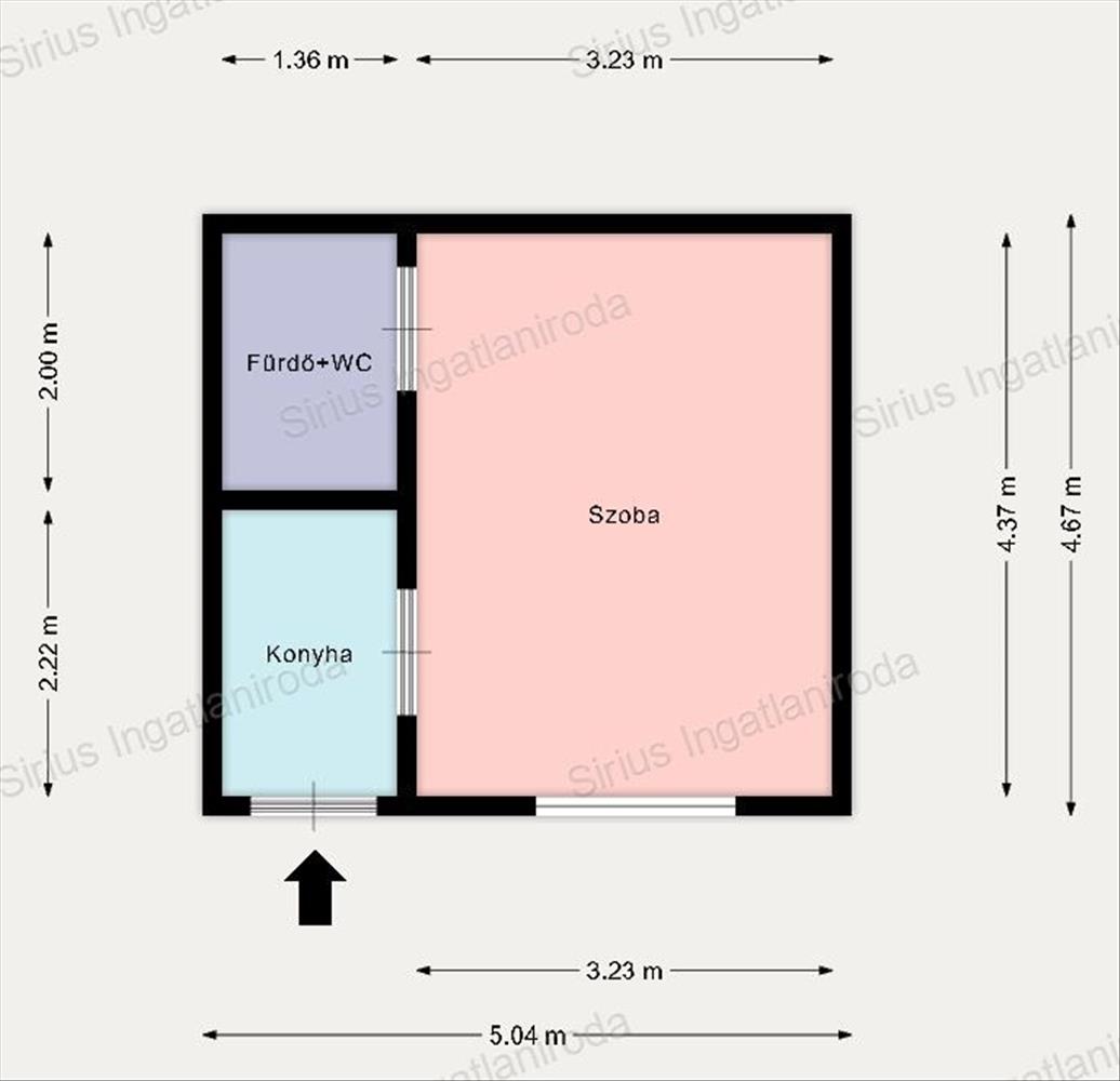 22 nm-es, földszinti garzonlakás, rendezett, közös udvaros tár...