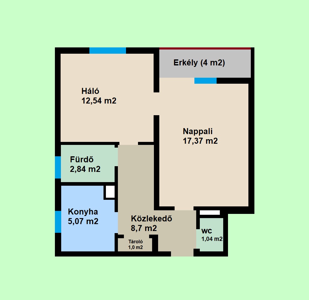 - a lakáshoz tartozik egy 2 m²-es tároló, a raktárhelyiségben
