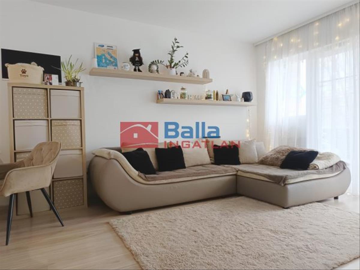 A lakás két szobás, kényelmes, világos, jó elrendezésű. Az igényes, sok tárolóhellyel rendelkező modern, gépesített konyhát a tulajdonos készíttette egyedi igények alapján. Könnyen tisztán, rendben tartható felületek, időtálló anyagok, színek jellemzik, ahogy a többi helyiséget is. Tágas nappalijával együtt az étkezőnek is komfortos helyet biztosít. a wc és a fürdő külön helyiségben van, kényelmes méretű hálószobájában is jól kihasználható óriás tároló kapott helyet. Az előszobában beépített tükrös szekrény biztosít tárolási lehetőséget. Terasza lehetőséget ad kinti étkezésre, reggeli kávézásra, napozásra.
