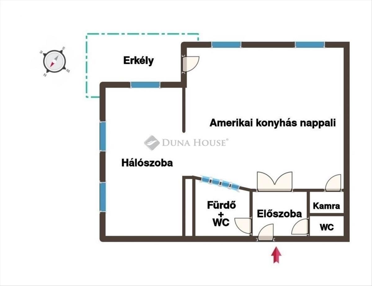 egy előszoba fogad, ahonnan jobb kézre található a külön wc, bal kézre a fürdőszoba,