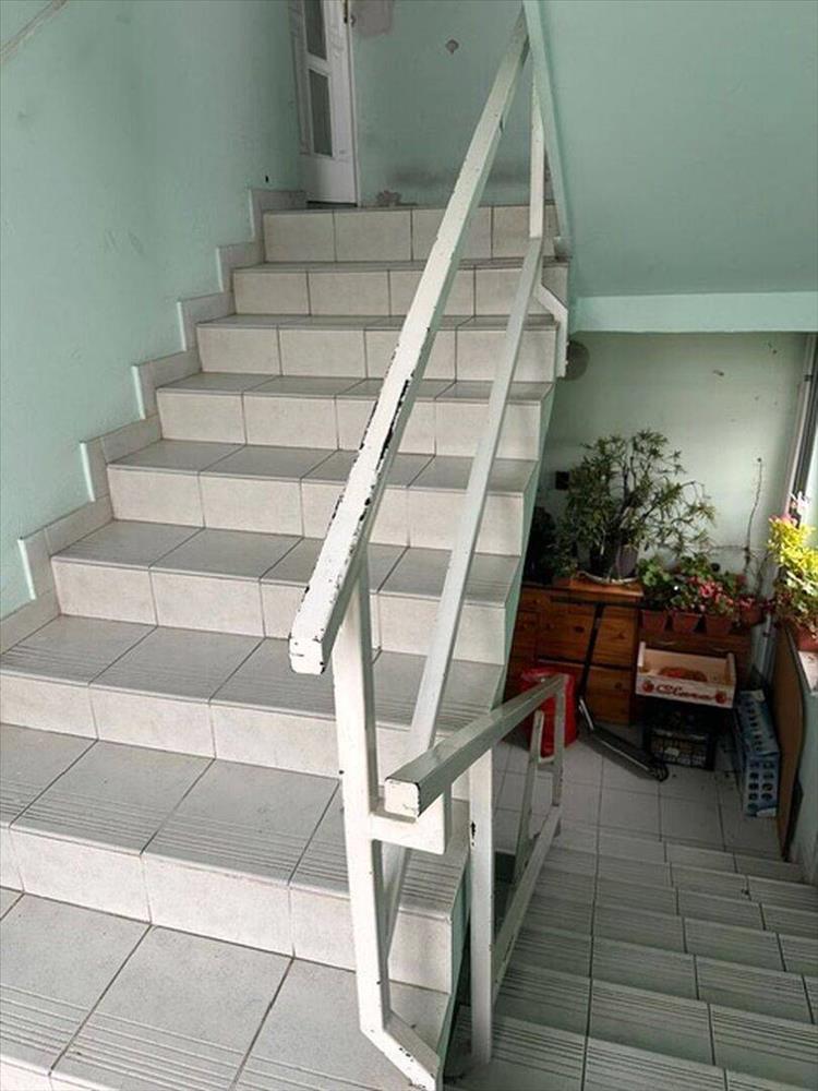 A lakás zárt lépcsőházból nyílik, a felső szinten helyezkedik el.