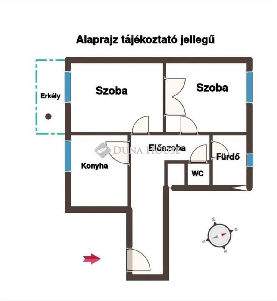 Eladó egy 55nm -es, 2 szobás, részben felújítandó lakás egy négyszintes épület harmadik emeletén.
