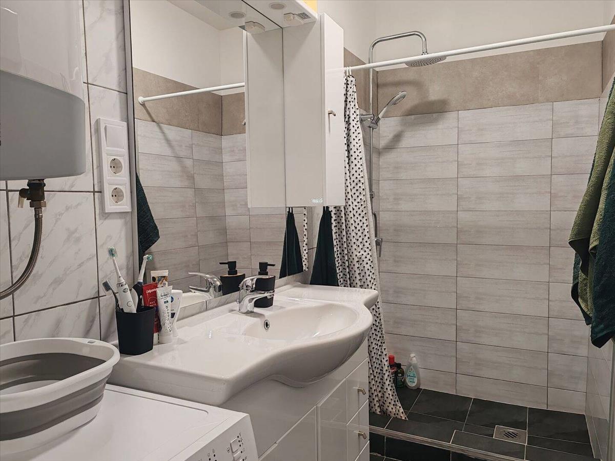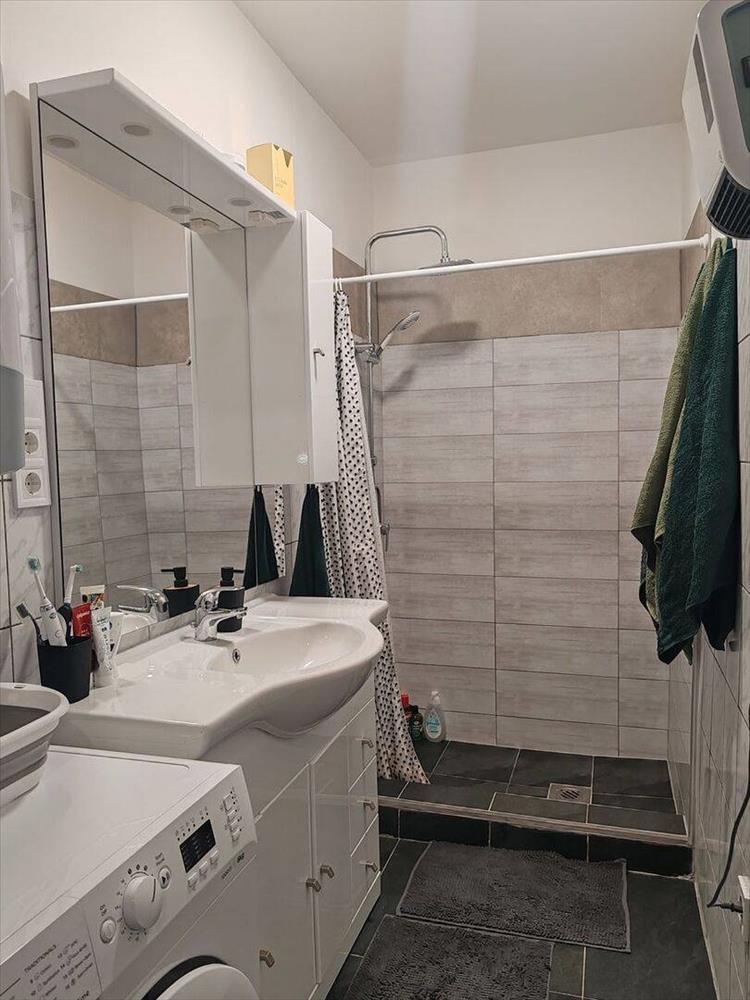 A fürdőszobában épített zuhanyzó van. Az illemhely külön helységben helyezkedik el.