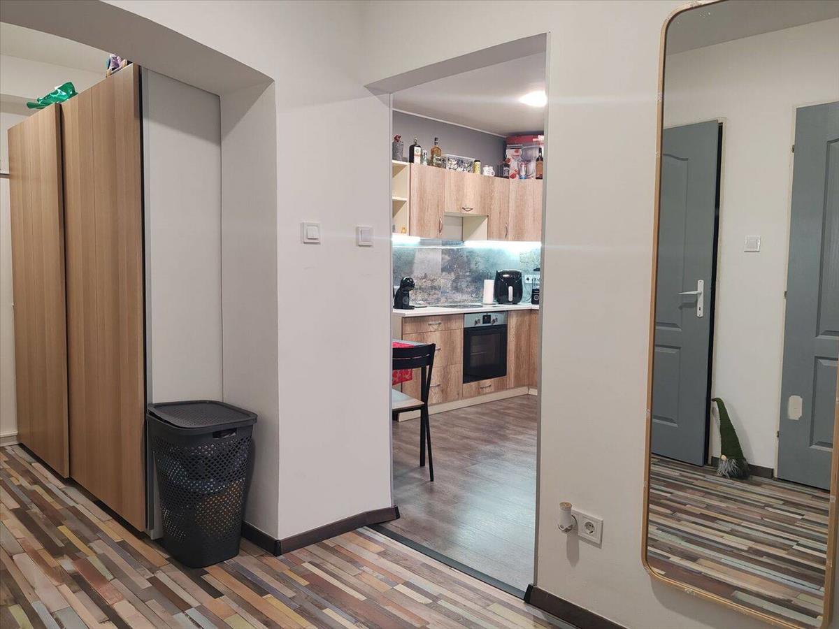 A konyha nagy méretű, beépített mosogatógéppel, vynil padló burkolattal. a többi helyiségben modern laminált padló lett elhelyezve.