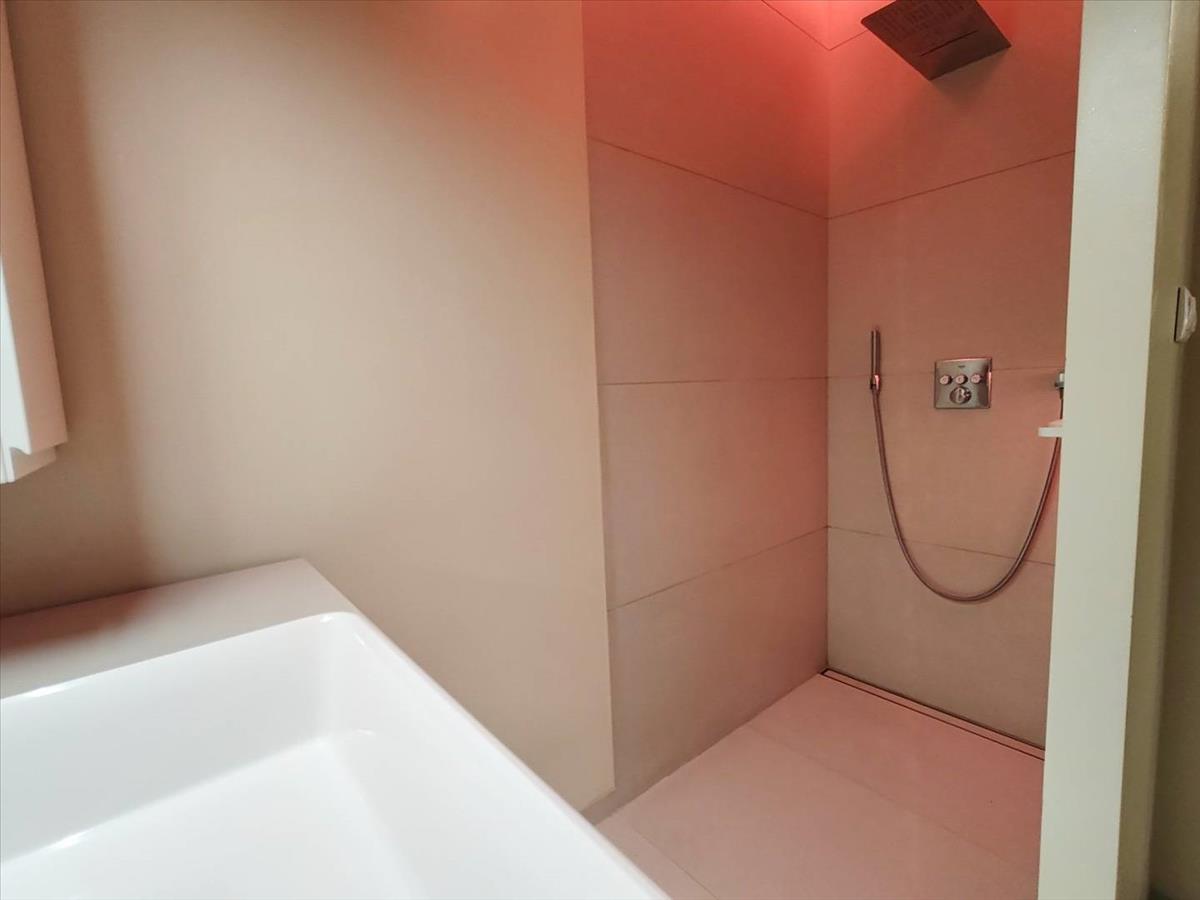 A fürdőszobában épített zuhany van, hangulat beépített hangulat világítással. Az Aeg mosógép és szárítógép beépített, maradnak is.