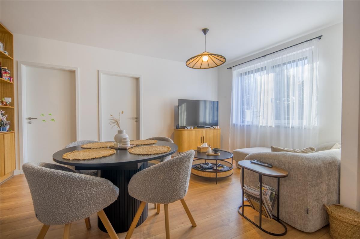 3 Szobás, 59 m2-es, földszinti, 66 m2 saját kertkapcsolattal és kizárólagos használatú kültéri parkolóhellyel rendelkező, kiváló állapotú lakás eladó Budafokon, 2023-ban épült, 3 lakásos társasházban. Modern, ízléses anyaghasználata, hőszivattyús fűtése és a kertkapcsolat ritkán látható kombináció, családosoknak is kiváló választás lehet - az épületben gáz nincs.