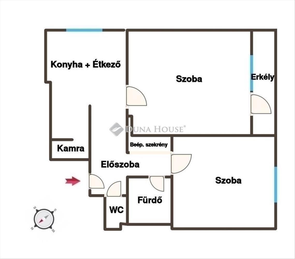 Az ingatlan állapota és műszaki paraméterei:A 59 m2-es kiváló elosztású lakás az épület 2. emeletén helyezkedik el. Az ingatlan jó állapotú, folyamatosan karbantartott és tehermentes, így akár azonnal költözhető, de modernizálásra is kiváló alapot nyújt. a terek kialakítása praktikus: a tágas és napfényes nappali mellett egy különnyíló hálószoba biztosítja a kényelmet.