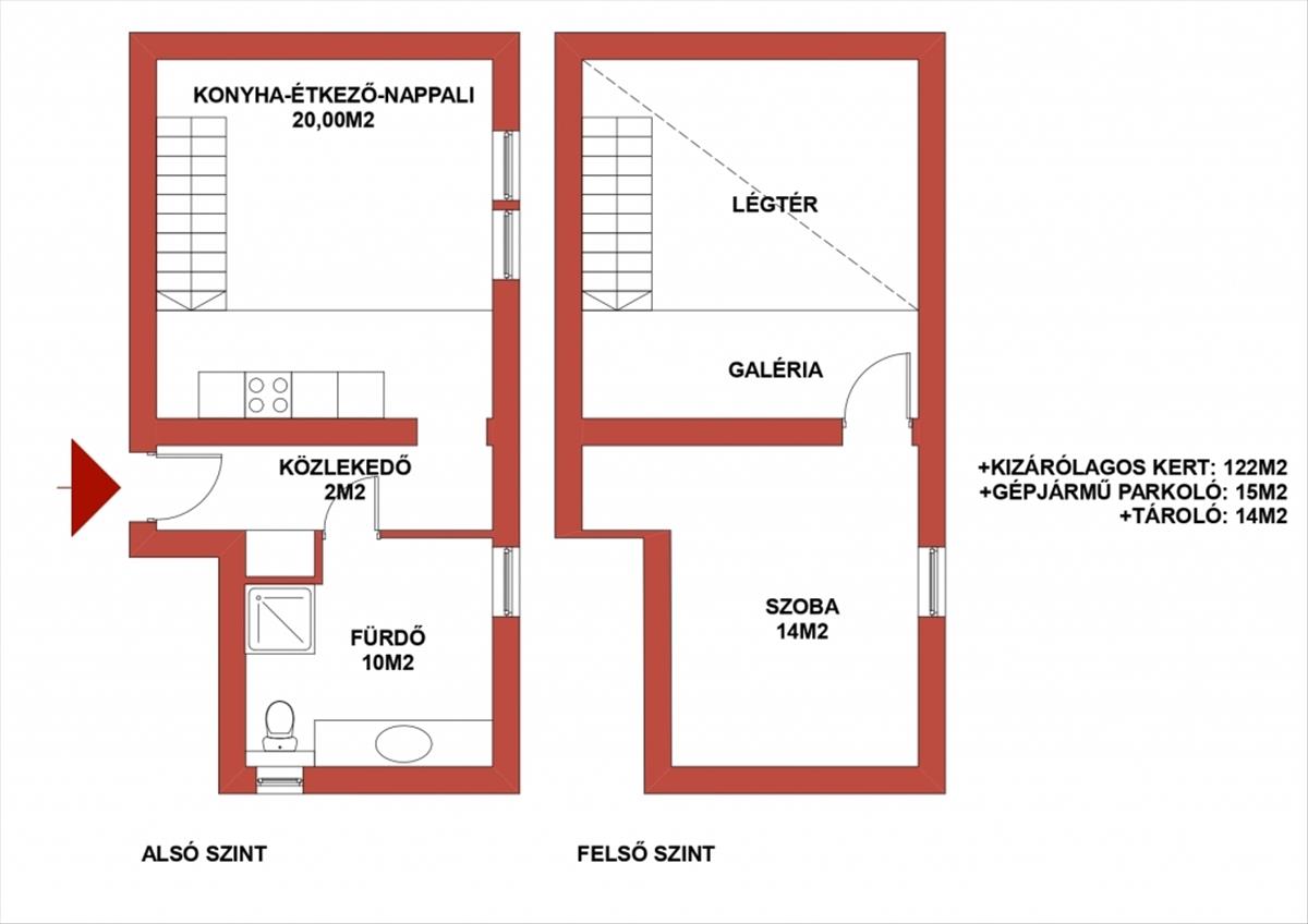 A nappali-konyha tágas, napfényes, nagy ablakai a kertre néznek, a galérián pedig kényelmes hálórész kapott helyet. a lakáshoz 122 nm saját kertrész, saját parkoló, valamint 14 nm -es tároló tartozik. a kertbe autóval is kényelmesen be lehet állni.
