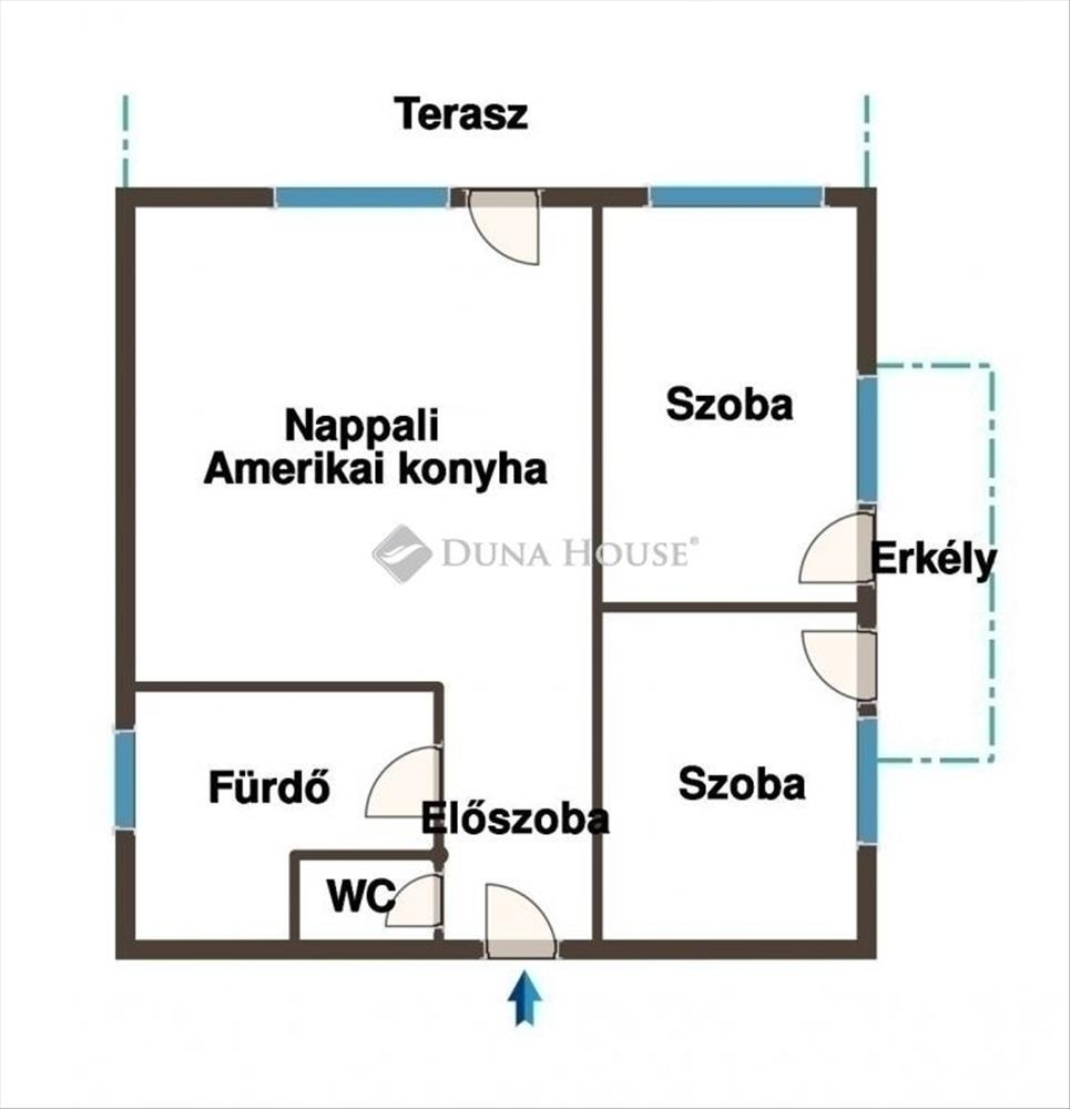 Belépés után az előszobában találjuk magunkat, ahonnan balra a külön wc, majd a fürdőszobába juthatunk. Jobbra a gyerekszoba, majd a szülői hálószoba nyílik, a bejárati ajtóval szemben pedig a tágas amerikai konyhás nappali helyezkedik el. a két hálószobából kijuthatunk a nagyjából 5 nm -es erkélyre, a nappaliból pedig a 15 nm -es külön teraszra juthatunk ki.