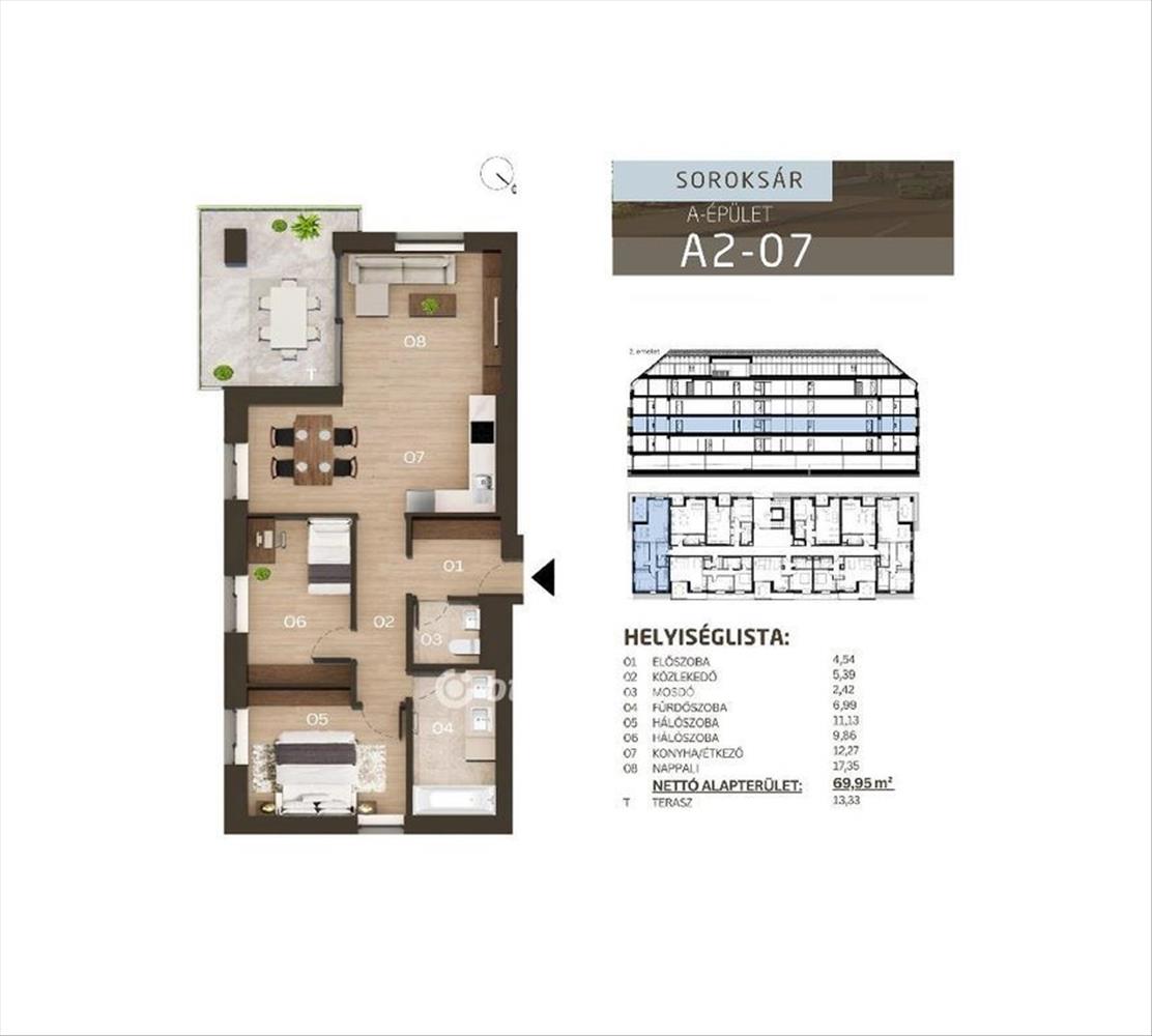 Az első fázisban 30 darab, a+ energetikai besorolású, hőszivattyús lakás épül erkéllyel, mennyezeti hűtés-fűtéssel és prémium műszaki tartalommal.