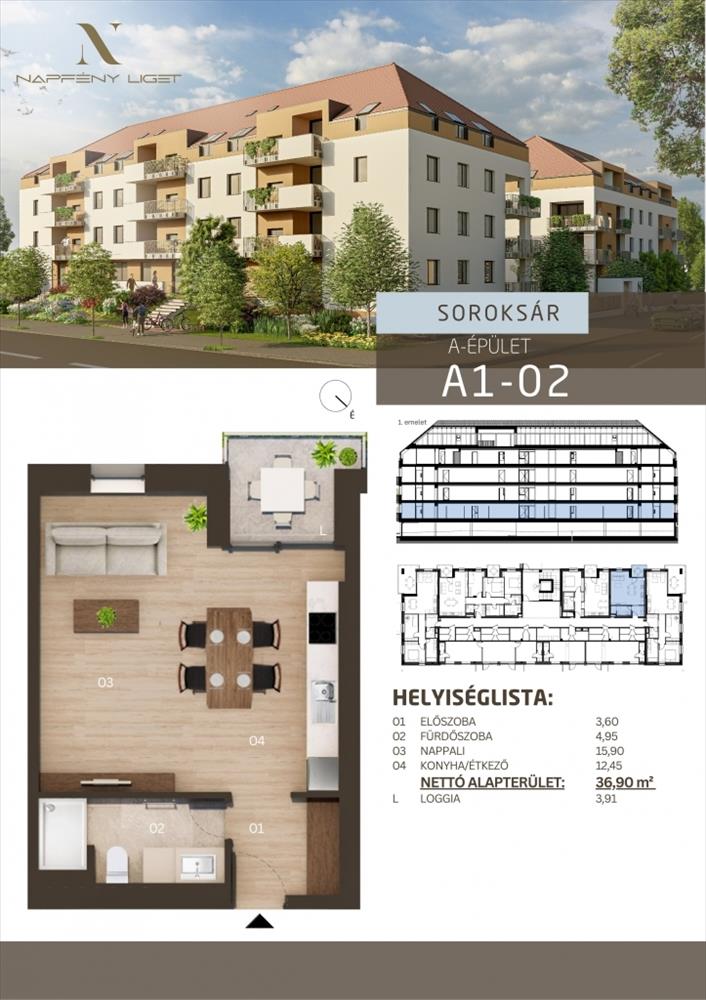 Az első fázisban 30 darab, a+ energetikai besorolású, hőszivattyús lakás épül erkéllyel, mennyezeti hűtés-fűtéssel és prémium műszaki tartalommal.