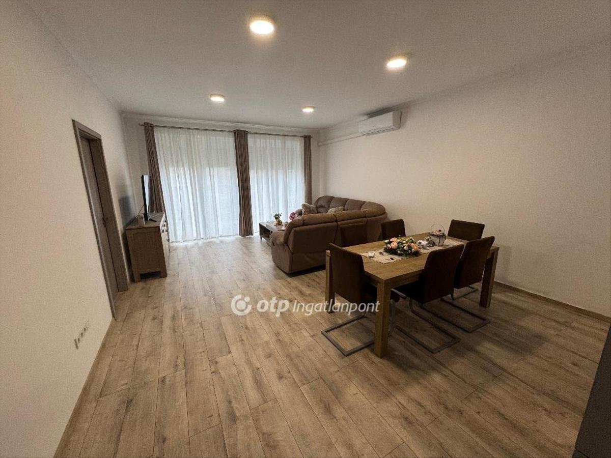 A lakás elrendezése praktikus és élhető: az amerikai konyhás nappali világos, tágas közösségi térként szolgál, mellette két külön nyíló hálószoba biztosít kényelmes életteret. a nappaliból közvetlen kertkapcsolat nyílik a 70 m2-es saját kertre, amely ideális helyszíne lehet családi programoknak, baráti összejöveteleknek vagy akár egy nyugodt reggeli kávé elfogyasztásának is.