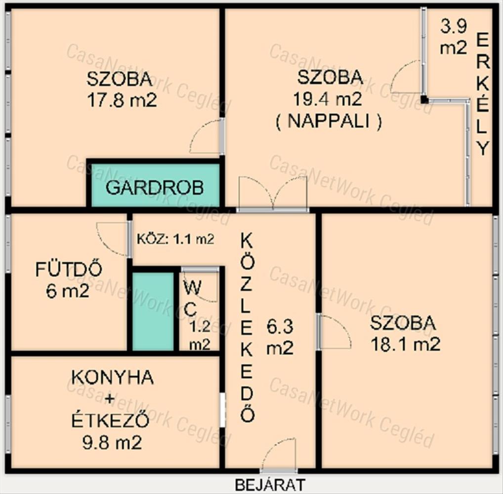 A casanetwork cegléd eladásra kínálja a 174602156 számú ceglédi belvárosi 83 m2-es felújított tégla lakást.