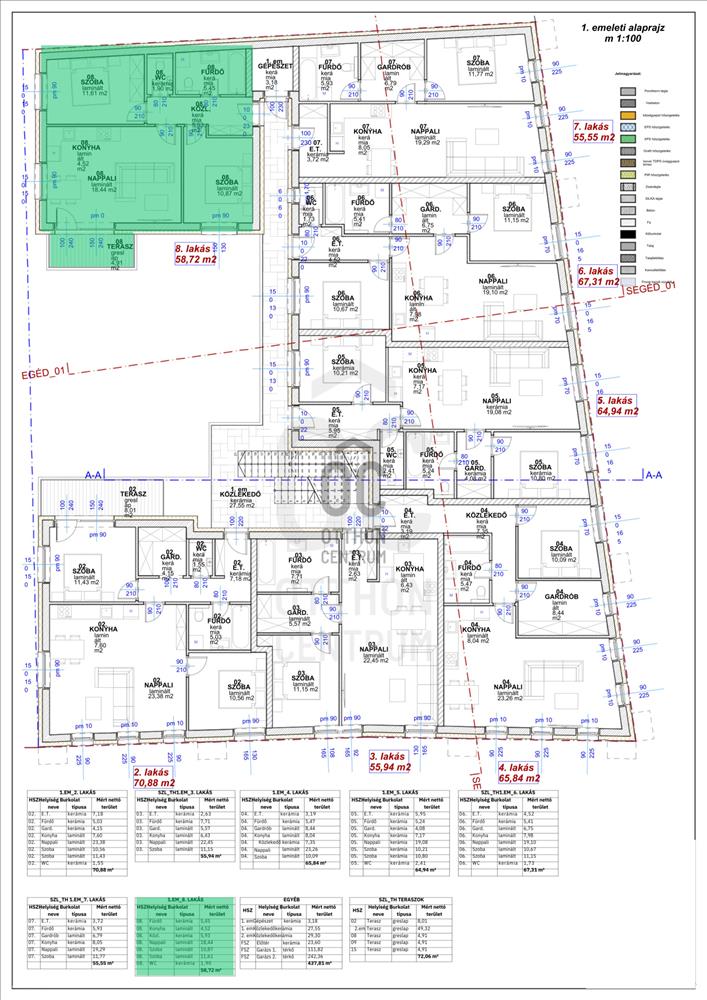 1. És 2. emeleten 7-7 lakás (46. 89 - 67. 31 Nm)