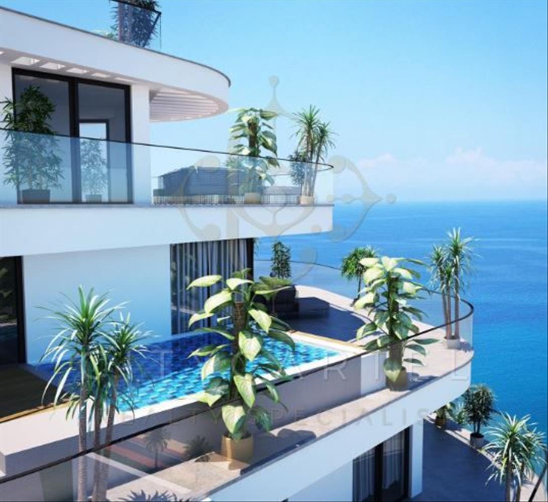 Észak-Ciprus nyugati részén, közvetlenül a tengerparton, vadonatúj projekt lélegzetelállító kilátással a tengerre és a hegyekre!