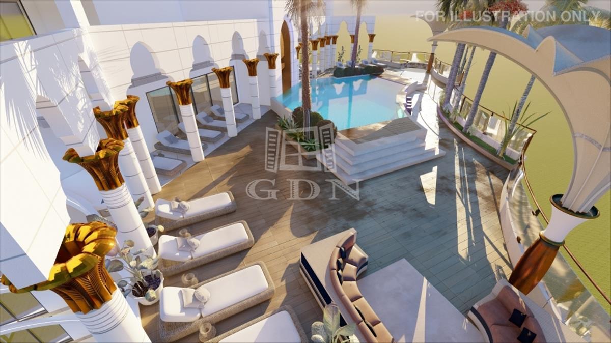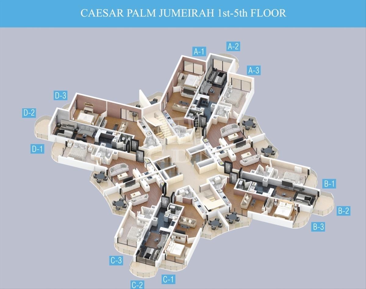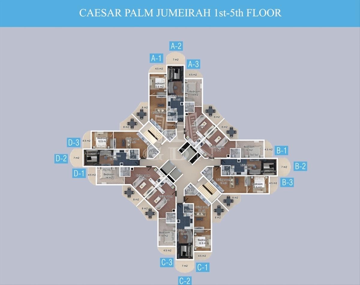 A Caesar Palm Jumeirah modern lakókomplexum 300 méterre található a tengertől, homokos stranddal Iskelén a Bogaz negyedben. a komplexum előnye a lenyűgöző kert, a zöldellő terület. a komplexum kényelmes lakhatásnak és befektetésnek is egyaránt tökéletes.