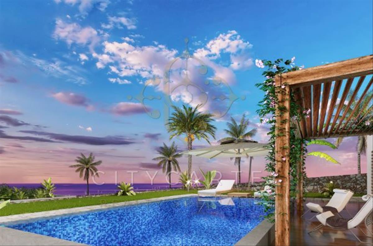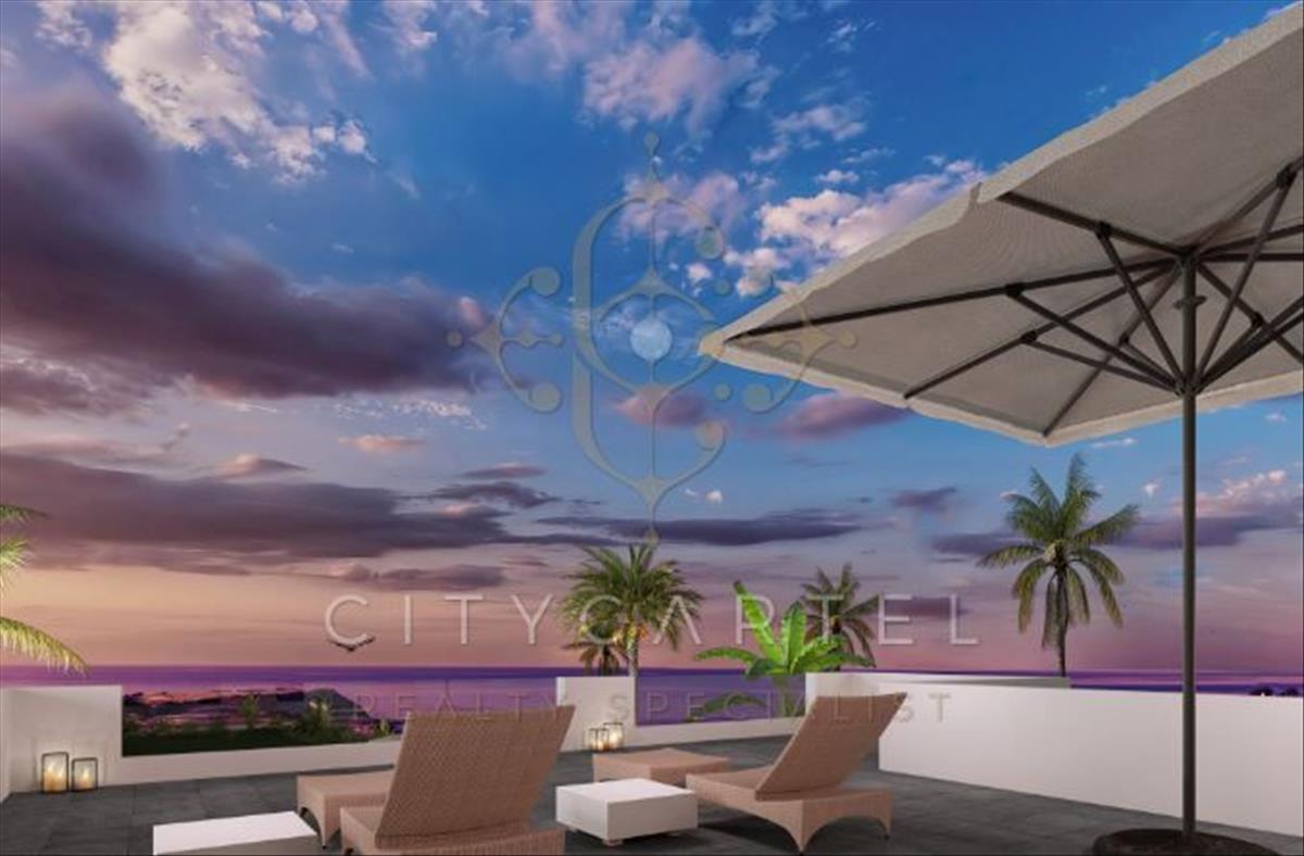 Épülő 3 hálószobás bungaló 550 nm telken, 140 nm két szintes ingatlan, 80 nm terasszal és 130 nm tetőterasszal, lélegzetelállító kilátással, csupán 500 méterre az azúrkék tengertől.
