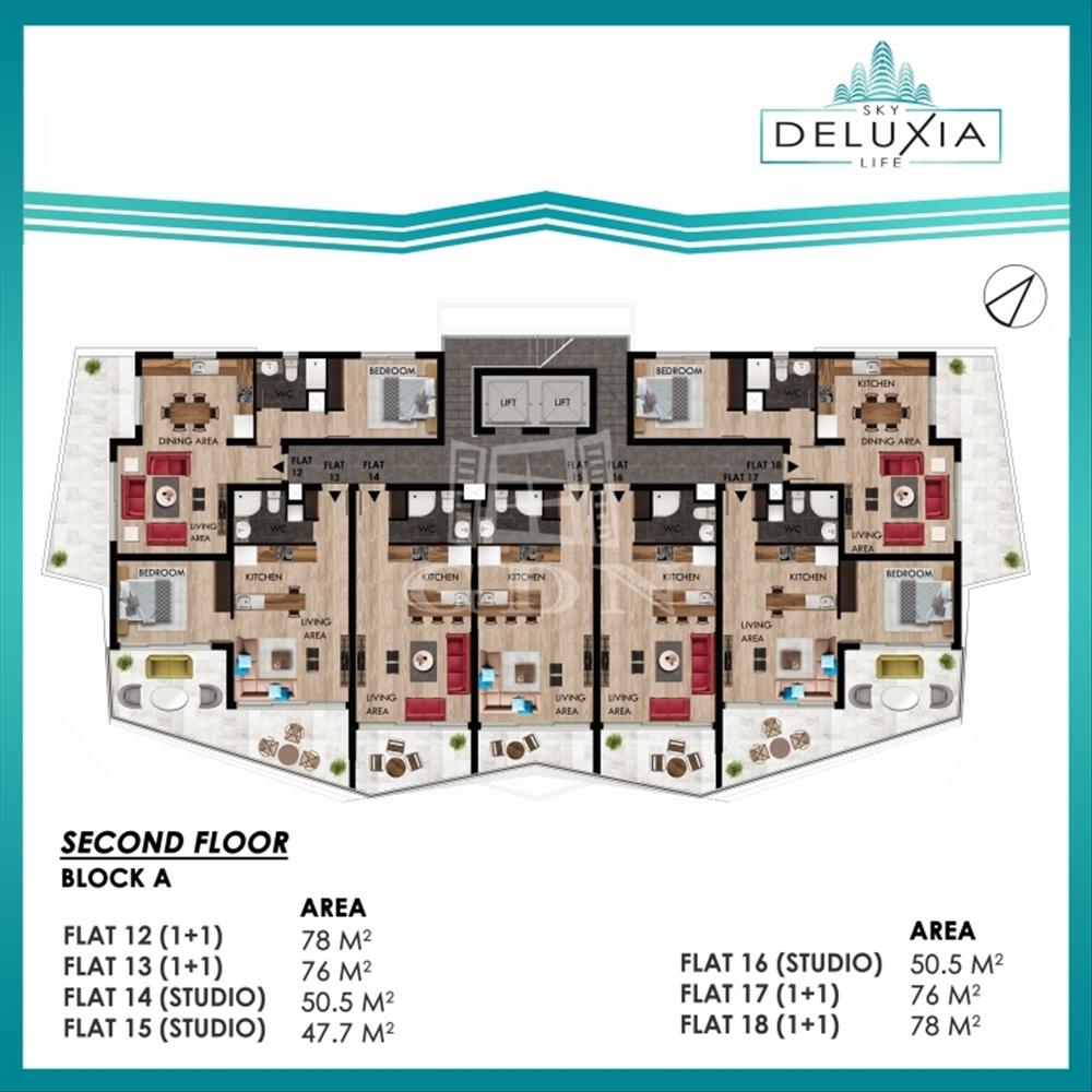 Az Iskelén épülő Sky Deluxia Life projekt keretein belül kínáljuk megvásárlásra, ezt az 'a' épületben található 2. emeleti bruttó 76 nm-es, Nappali+1 hálószobás lakást, amely mind saját használatra, mind bérbeadásra / befektetésre kiváló lehetőség. ( Az alaprajzon flat 13 lakás)
