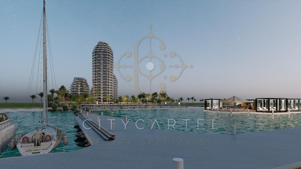 Észak-Ciprus nyugati részén, közvetlenül a tengerparton, vadonatúj projekt lélegzetelállító kilátással a tengerre és a hegyekre!