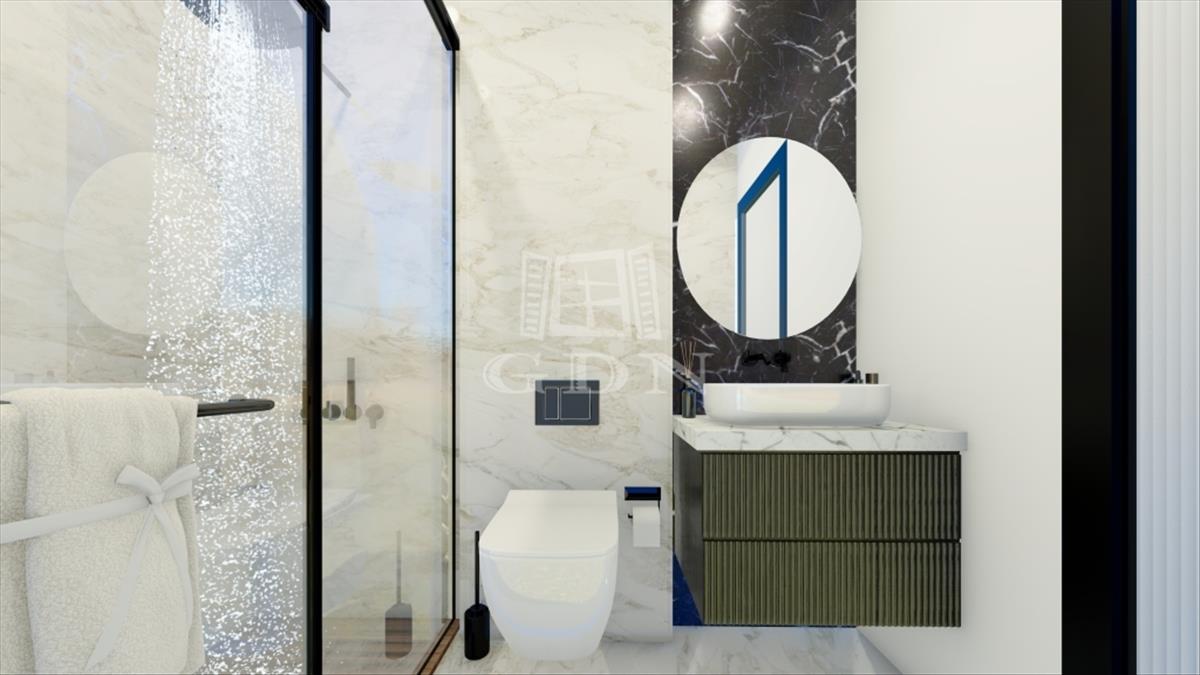 A b1 tízemeletes épület 2. emeletén található ez a tágas apartman két hálószobával és terasszal, amely a nappalit és az egyik hálószobát egyesíti. Az apartman minden ablakából lenyűgöző kilátás nyílik a tengerre, a medencére és a hegyekre. Ezen kívül a lakásban van videó kaputelefon, központi videó megfigyelő rendszer, internet és központi műholdas rendszer. Vannak még beépített gardróbszekrények, magasfényű konyhabútorok, natúr márvány ablakpárkányok, dupla üvegezésű pvc ablakok.