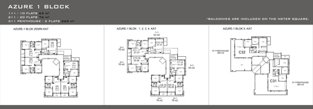 A Blue Residence projekt Bahceler városában található, a tengerparttól való távolsága megközelítőleg 500 méter, 5 épület blokkban összesen 155 lakás épül, amelyek között megtalálható az 52 nm studio lakástól a 143 nm penthouse lakásig több kategória is.