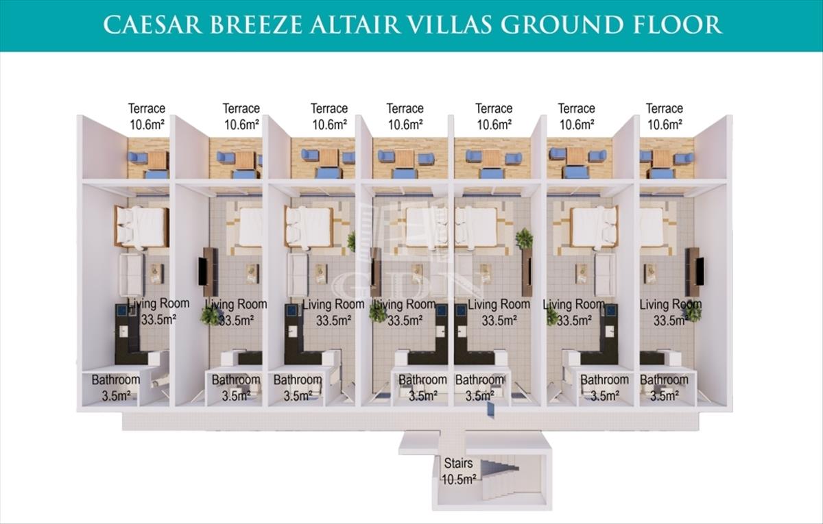 A homokos strandtól mindössze 200 méterre, a Földközi-tengerre és a hegyekre nyíló lélegzetelállító kilátással körülvett Caesar Breeze tökéletes hely egy csendes, nyugodt élethez vagy a kellemes kikapcsolódáshoz az év bármelyik időszakában.