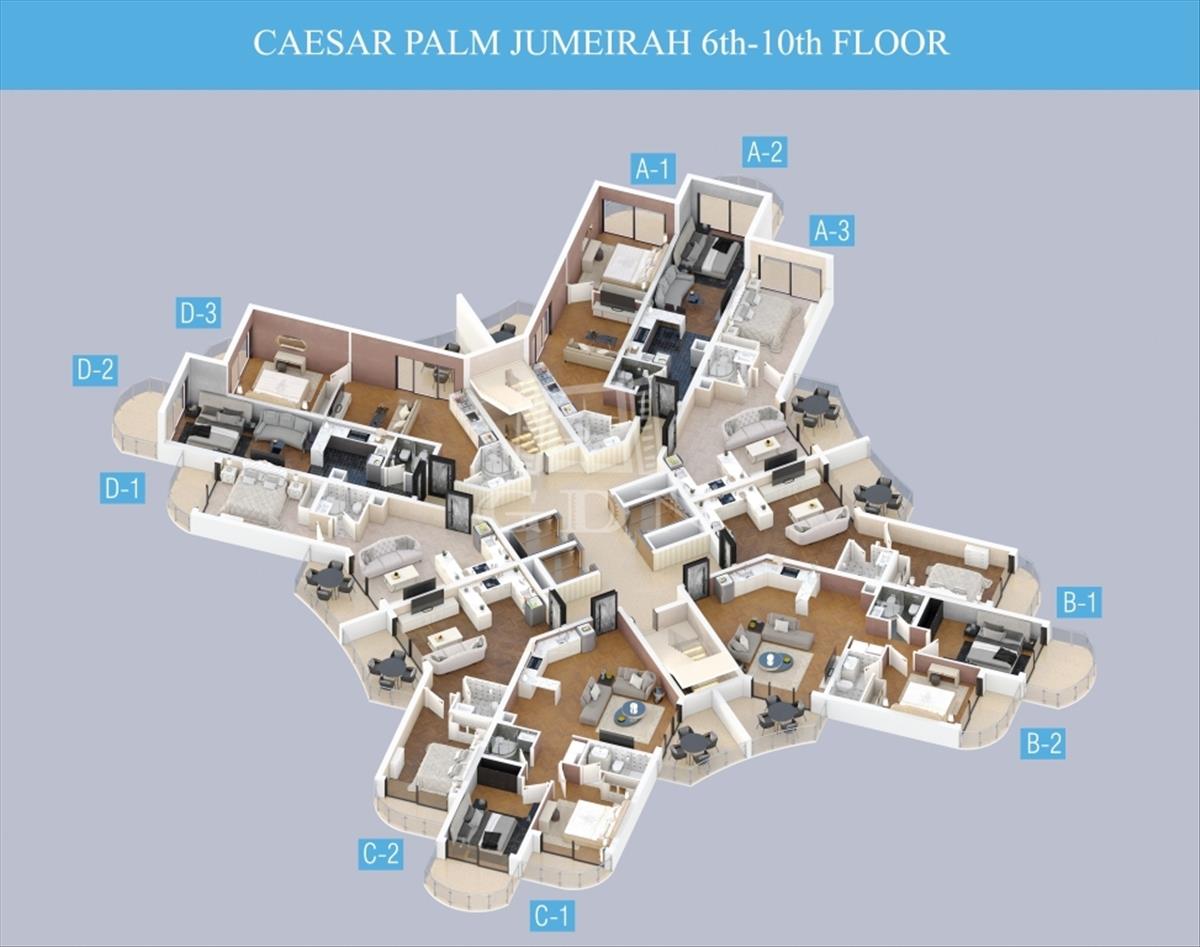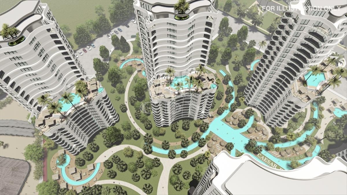 A Caesar Palm Jumeirah modern lakókomplexum 300 méterre található a tengertől, homokos stranddal Iskelén a Bogaz negyedben. a komplexum előnye a lenyűgöző kert, a zöldellő terület. a komplexum kényelmes lakhatásnak és befektetésnek is egyaránt tökéletes.