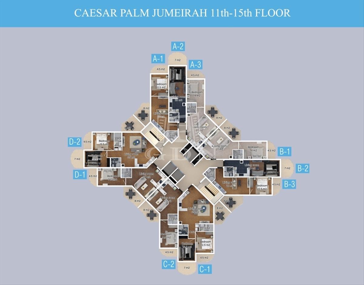 A Caesar Palm Jumeirah modern lakókomplexum 300 méterre található a tengertől, homokos stranddal Iskelén a Bogaz negyedben. a komplexum előnye a lenyűgöző kert, a zöldellő terület. a komplexum kényelmes lakhatásnak és befektetésnek is egyaránt tökéletes.