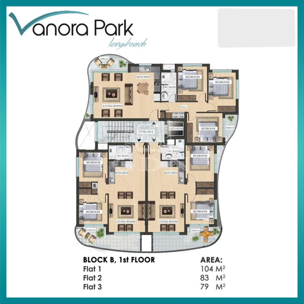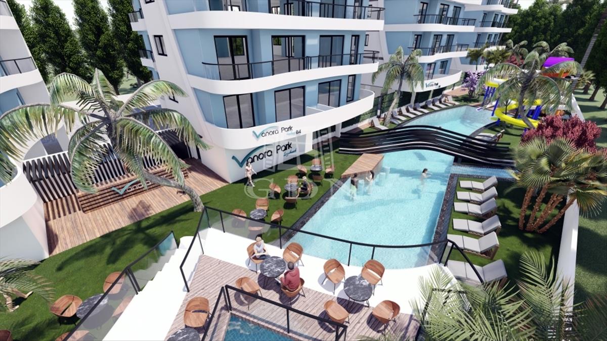 A Vanora Park Long Beach komplexum 180 db 2 és 3 hálószobás apartmant, valamint irodákat és üzletközpontokat foglal magába. Ez a komplexum csendes, nyugodt életet biztosít a természettel összhangban, távol a város nyüzsgésétől, úszómedencékkel, víziparkkal, grillezővel, kerttel, játszótérrel, gyógyfürdővel és szépségszalonnal. További extrák a szauna, fitneszközpont, bárok a medencénél és a teraszon, amelyek lehetővé teszik az élet teljes élvezetét anélkül, hogy elhagyná otthonát.Megvételre kínáljuk ezt a tágas, világos 3 hálószobás apartmant két erkéllyel, a nappali és az egyik hálószoba mellett, a tízemeletes b1 épület 1. emeletén. Az apartman nagy panorámás ablakokkal rendelkezik, ahonnan csodálatos kilátás nyílik a tengerre és a hegyekre. a lakás fényes felületű beépített konyhával, natúr márvány ablakpárkányokkal, beépített gardróbbal és dupla üvegezésű pvc ablakokkal rendelkezik. Ezen kívül a lakásban van központi videó megfigyelő rendszer és videó kaputelefon, valamint internet és központi műholdas rendszer. a lakáshoz saját parkoló tartozik. (Az alaprajzon az 1 számú lakás)