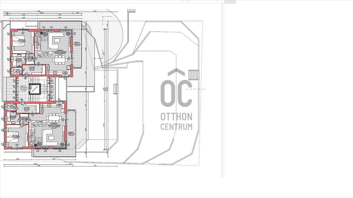 2. Lakás: 70nm, nappali+2 háló+33. 7 Nm-es terasz,