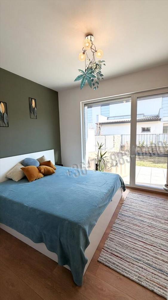 A mindennapi pihenéshez és feltöltődéshez a 18 m²-es, kertkapcsolatos terasz kínál ideális helyszínt, amelyhez gyönyörűen gondozott, automata öntözőrendszerrel ellátott füves kert kapcsolódik – valódi kis zöld oázis a város szívében.
