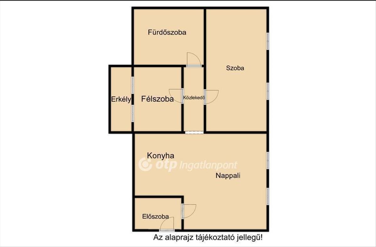 - Elosztása: tágas nappali, konyha- étkező egy légtérben, egy szoba erkéllyel, szoba, konyha, fürdőszoba és wc egy helyiségben, előszoba