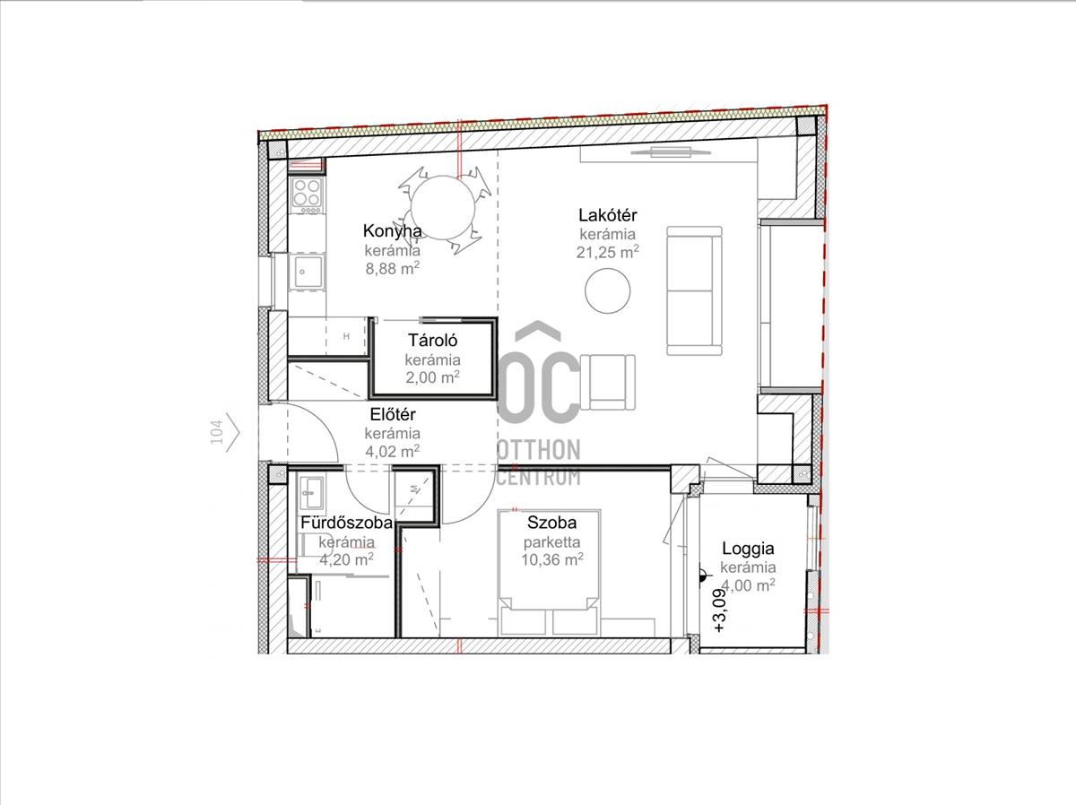 Ez az 1. emeleti lakás 50, 71 nm-es nappali-étkező-konyha +1 szobás, 4 nm-es loggiával. Nappali+2 szobássá alakítható.