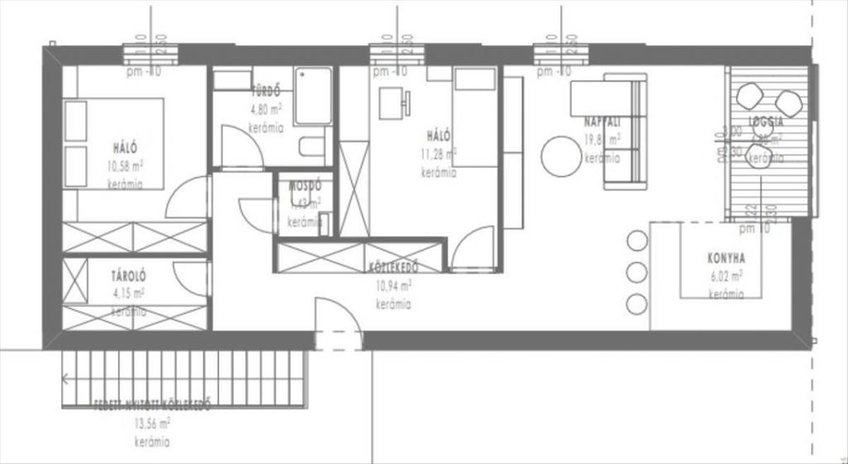 I. emeleti 3. Lakás hasznos alapterülete: 69, 00nm+ 4, 80nm loggia