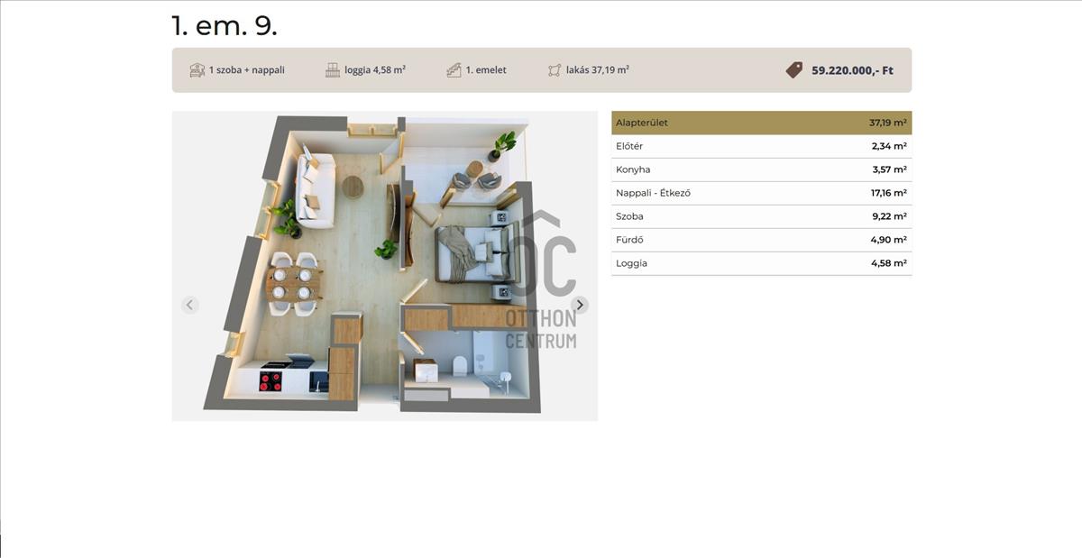 Debrecen frekventált városrészében, a Postakertben új építésű, 37-75 nm-es prémium lakások eladók. a 17 lakásos, liftes, 3 emeletes épületben a privát kertkapcsolatos lakásoktól a penthousig mindent megtalál.Ez az 1. emeleti lakás 37, 19 nm-es, nappali-étkező-konyha +1 szobás, 4, 58 nm-es loggiával.