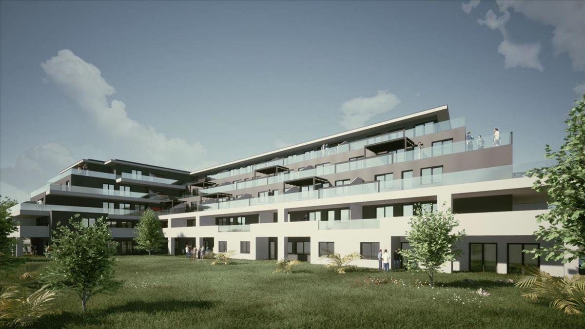 A földszinti lakások terasszal és saját kertkapcsolattal rendelkeznek.