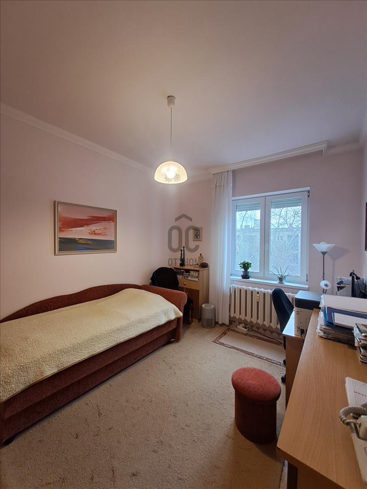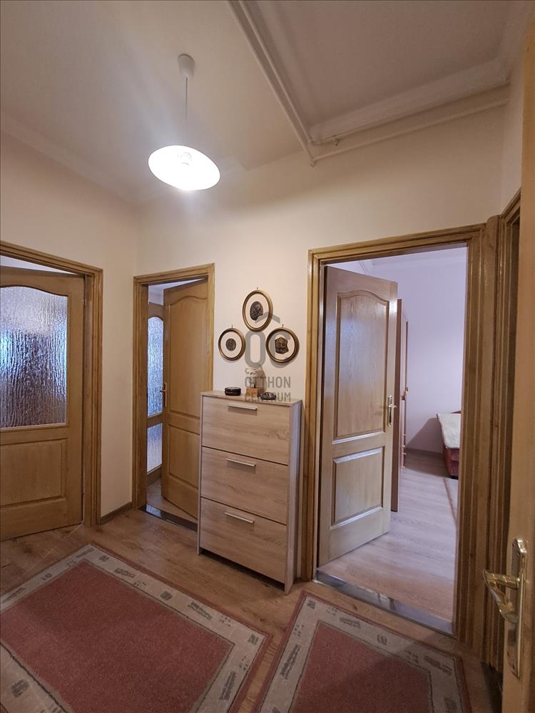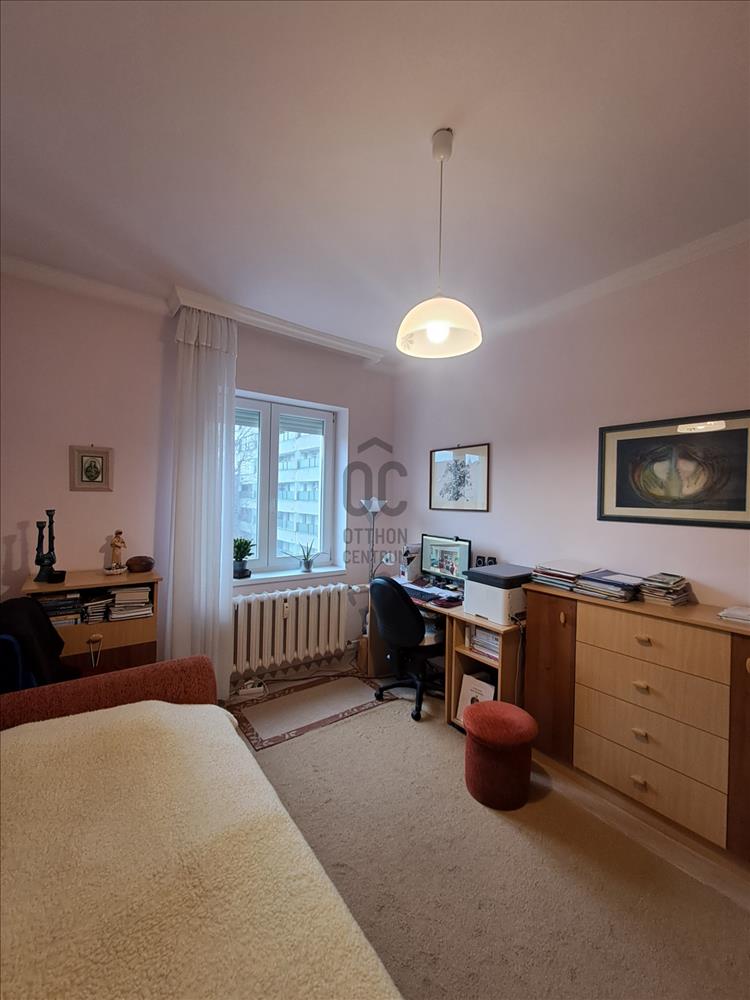 - Helyiségei: nagy nappali + 2 szoba, konyha, kamra, fürdőszoba, külön wc, gardrób, erkély,